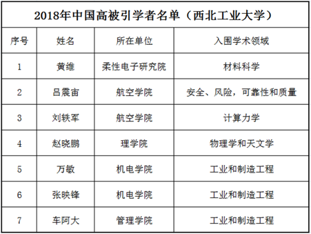 西工大新闻网1月19日电(高扬 李婧)2019年1月17日,世界著名出版公司爱思唯尔(Elsevier)发布了2018年中国高被引学者(Most Cited Chinese Researchers)榜单,来自229家高校、科研单位或企业的1899位中国大陆学者入选,其中我校共有7位学者上榜。
