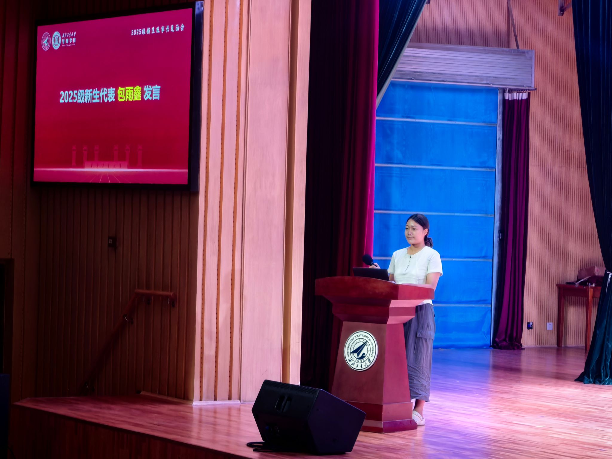 在长安校区南山艺堂举行2025级新生及家长见面会。院长车阿大、党委书记张爽、党委副书记王海啸,2025级本科生班主任陈倩、肖平、介任龙,辅导员管琳菲,136名新生及家长参加了见面会。会议由管琳菲主持。