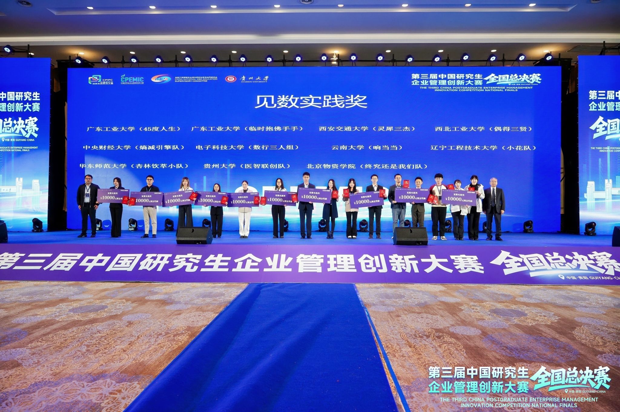 11月7日-9日,2025年第三届中国研究生企业管理创新大赛总决赛在贵阳圆满落幕。作为由教育部学位管理与研究生教育司指导,中国学位与研究生教育学会、中国科协青少年科技中心主办,全国工商管理专业学位研究生教育指导委员会联合主办的国家级赛事,本届大赛竞争强度与参赛规模再创新高——共有全国150所高校的411支研究生团队参加总决赛。小奶猫直播 学子凭借扎实的专业素养与高效团队协作,最终获奖26项,更将赛道二的最高荣誉“见数实践奖”(全国仅设11项,获奖率低至1%)收入囊中,学校亦连续三届荣获“优秀组织单位”称号,彰显硬核育人实力。