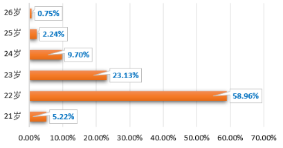 从2022级全日制硕士研究生的年龄分布来看,在千禧年出生的“00后”占比超过半数,TA们今年22。此外,年龄最小的新同学21岁,年龄最大的新同学26岁。惊喜的是,出生日期分别为“19990919”、“20000711”、“20000727”、“20000824”、“20001021”和“20001022”的12名新同学可以找到和自己同年同月同日生的TA呢。