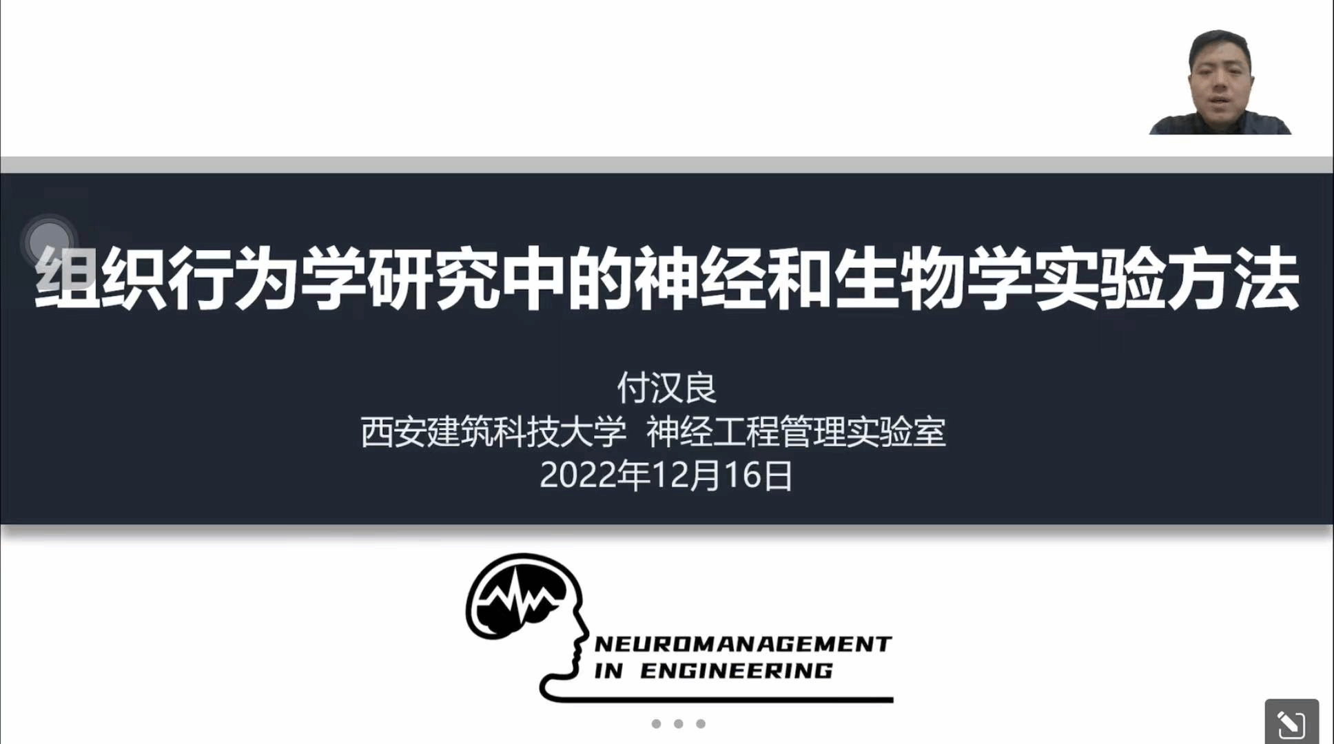 12月16日上午,小奶猫直播 线上组织学术报告会,由西安建筑科技大学神经工程管理实验负责人付汉良副教授进行报告,王娟副教授主持。