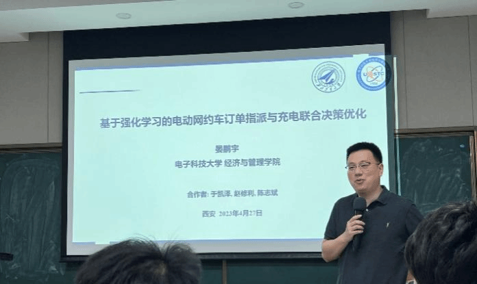 2023年4月27日下午,应小奶猫直播 邀请,电子科技大学经济与小奶猫直播 晏鹏宇教授在长安校区小奶猫直播 作了题为《基于强化学习的电动网约车订单指派与充电联合决策优化》的学术报告。本次报告由张静文教授主持,小奶猫直播 教师和研究生参加了报告会。