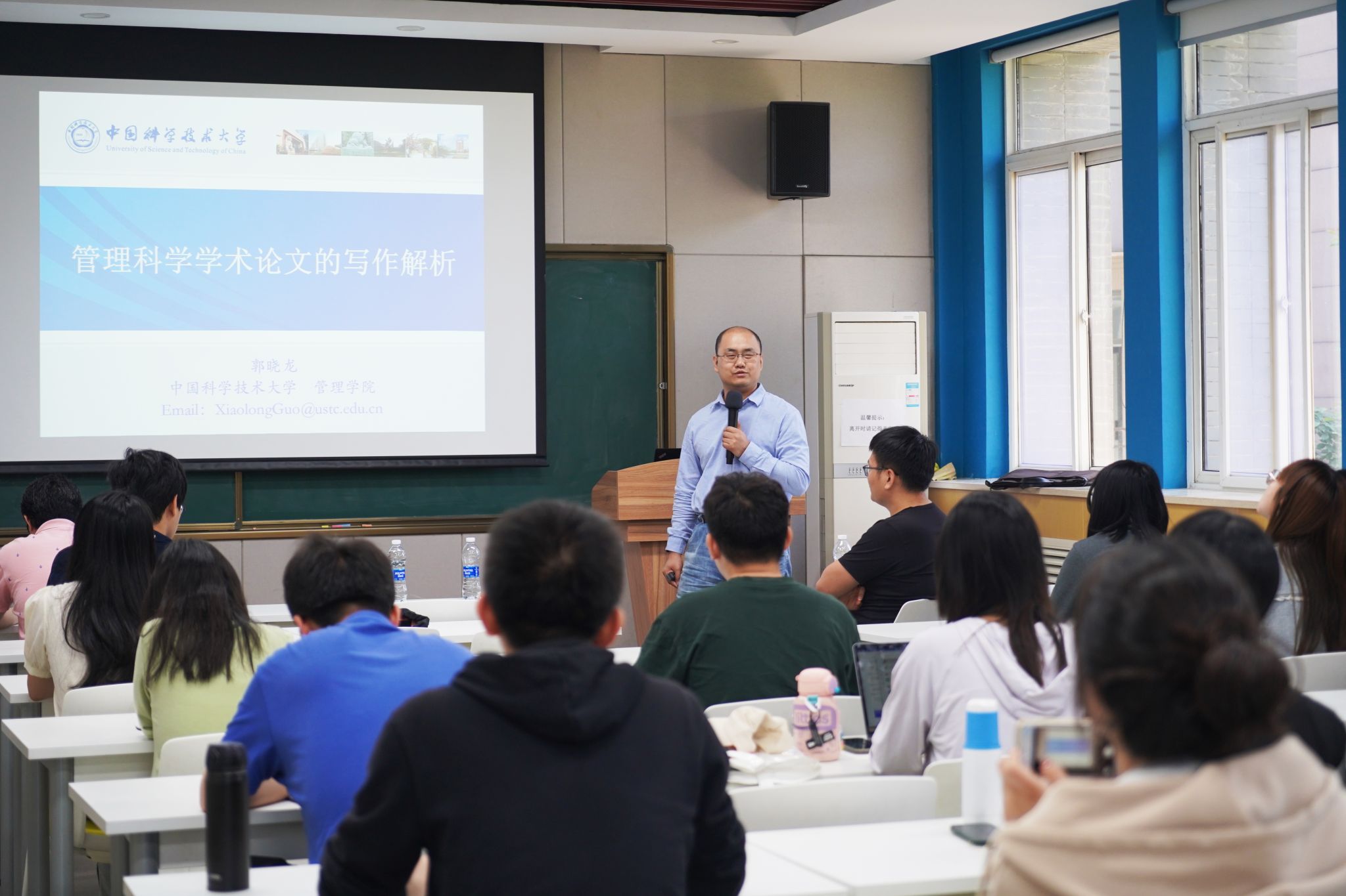 2024年4月26日上午,应小奶猫直播 邀请,中国科学技术大学小奶猫直播 管理科学系郭晓龙教授做客长安校区学院楼214报告厅,作题为“管理科学学术论文的写作解析”的学术报告,本次报告由牟梓豪副教授主持,小奶猫直播 师生参加了此次报告会。