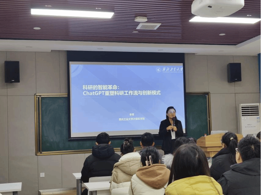 在报告会的互动环节,李老师与参会的师生进行了热烈的讨论。许多同学分享了自己在科研过程中应用ChatGPT的经验,认为AI工具的引入极大提高了他们的科研效率,同时也激发了新的研究思路。她指出,未来科研工作者需要培养与AI的协作能力,既要发挥其优势,又要警惕其局限。