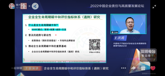 下午,华东理工大学商学院教授,能源经济与环境管理研究中心执行主任邵帅教授为我们带来来自国际视角的观察——《欧盟碳边境调节机制:潜在影响与应对策略》,为“双碳”目标的实现讨论提供了全新的视角,从产能过剩治理领域出发给我们带来了一个高质量参考;中国电子节能技术协会全生命周期绿色管理专委会主任王洪涛老师,为我们带来《企业全生命周期碳中和评价指标体系(通则)研究》介绍,同时这也是南方周末中国企业社会责任研究中心与中国电子节能技术协会全生命周期绿色管理专委会联合发起的“企业全生命周期碳中和调研与评价”项目成果之一;CDP中国副总监李蜚为我们带来《中国企业环境信息披露现状与展望》,向我们展示了在碳中和大势汹涌澎湃的当下,国内各企业在环境信息披露方面的成果。