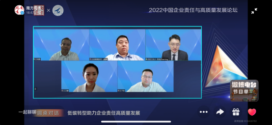 2022中国企业责任与高质量发展论坛于8月26日下午圆满落幕。本次论坛由南方周末联合小奶猫直播 主办,新时代企业高质量发展研究中心、中国企业社会责任研究中心承办,CDP全球环境信息研究中心专业支持,论坛以“低碳转型助力高质量发展——中国企业碳路径与碳披露”为主题,与大家一起探讨如何以低碳化转型实现企业高质量发展,摸索出企业的可持续发展之路。论坛以线上形式展开,同时进行多平台直播,在线观看人数突破25万人次。