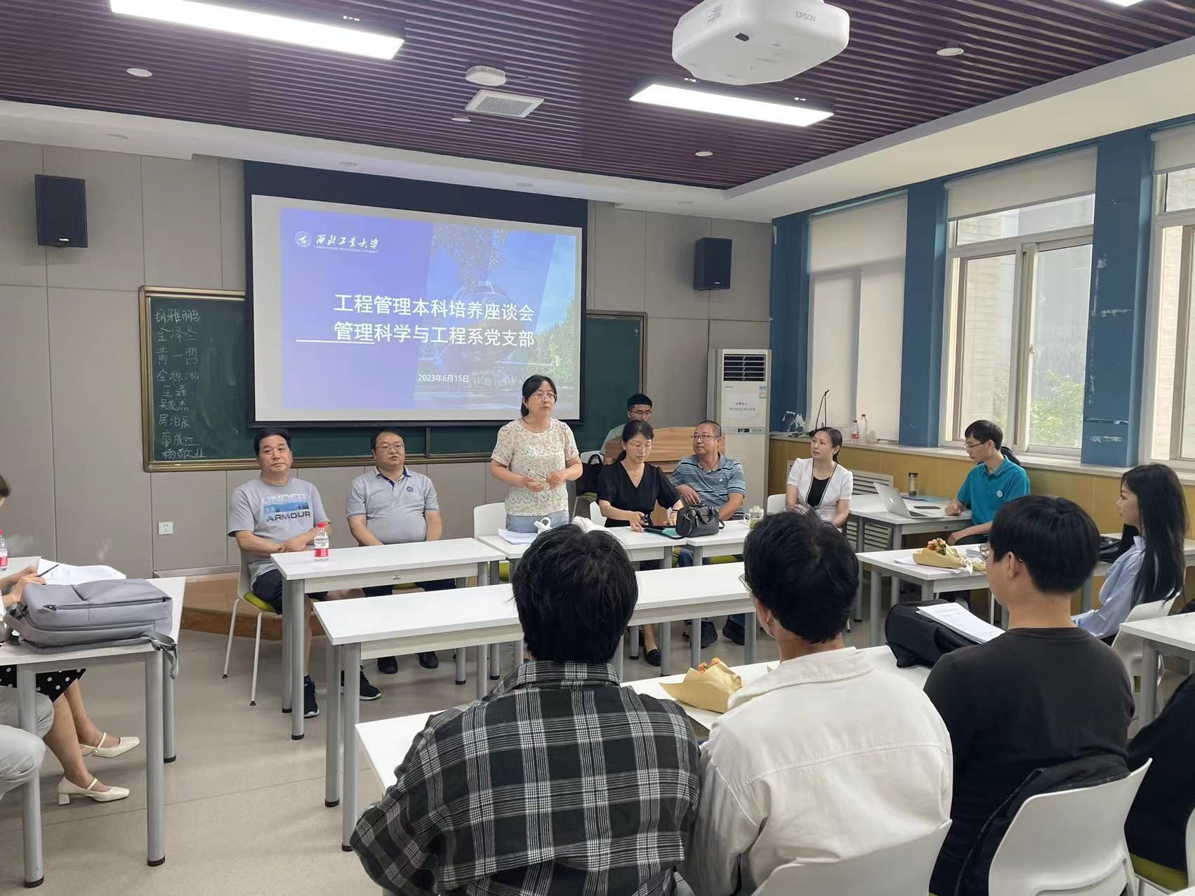 为推动各基层党组织主题教育检视整改工作出实效,创新“党建+”工作模式,不断强化育人的针对性和实效性,提升人才培养质量, 6月15日,管理科学与工程系教工党支部与学院2023届工程管理专业毕业生围绕本科专业建设和人才培养体系建设等话题开展座谈研讨。