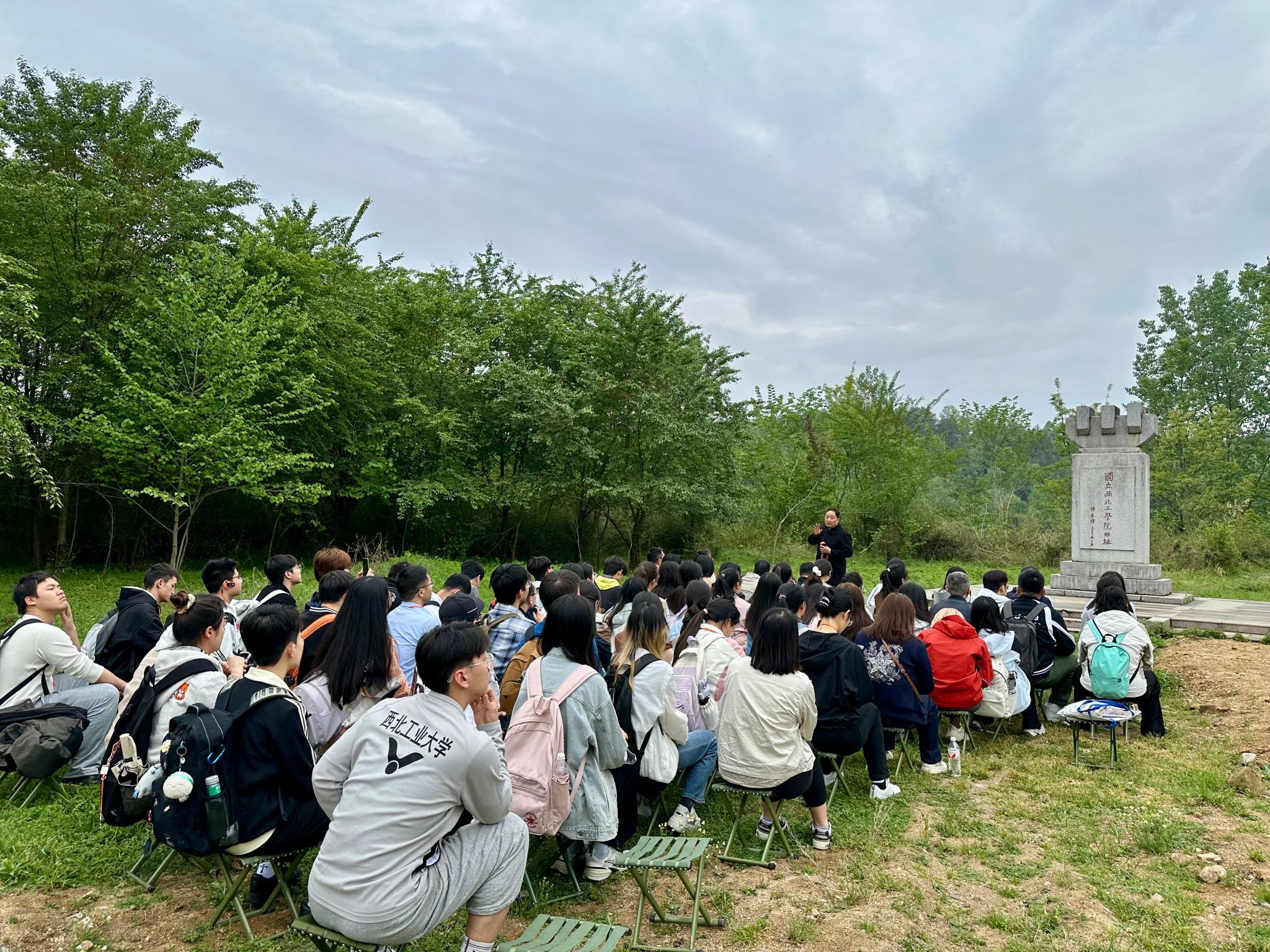 在古路坝国立西北工学院旧址,大家围坐在师昌绪先生亲笔题写的“国立西北工学院”石碑前,聆听城固县博物馆的老师口述国立西北工学院在古路坝的办学历史,重温抗战烽火中的这段峥嵘岁月,追忆校史文脉,共同诵读校训,缅怀前辈先烈。