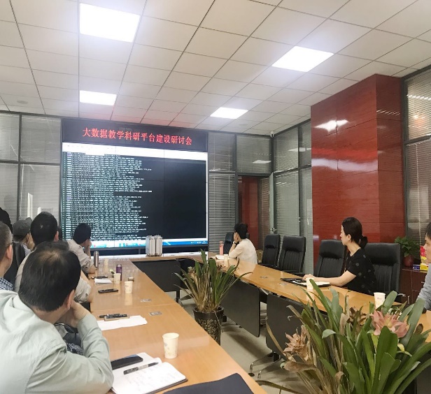 理学院院长岳忠玉首先从大数据技术实验中心建设背景、定位及目标、目前投入使用情况等几个方面进行了简单的介绍。然后,王莺详细介绍了大数据技术实验中心的实验实训平台、在线资源、服务器配置、集群分布等内容。接着,启光公司信息工程师为信管系教师演示了大数据技术实验室学生教学平台与教师科研平台的应用。座谈会后,信管系教师参观了大数据技术实验室、数学建模实验室、数据科学研讨室以及服务器机房,了解实验室的环境建设、硬件设备和软件系统等情况。最后,信管系教师和对方就围绕大数据云计算技术应用大数据实验课程设计实验“金课”建设方法与途径等方面进行了热烈的交流与深入的探讨。