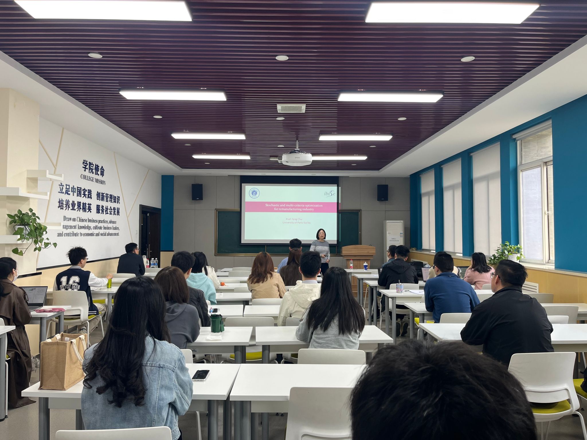 在本次报告中,Feng CHU从自身研究的再制造业的随机多目标优化出发,提倡一种循序渐进的研究方法,即在完全理解简单问题的机理之后,再逐步深入到更为复杂的问题中去。这种方法不仅有助于构建坚实的理论基础,也为解决实际复杂问题提供了清晰的思路。在寻找研究缺口(research gap)上,Feng CHU强调通过广泛阅读现有的学术论文和相关资料,发现研究领域内尚未被充分探索的问题或是现有研究中存在的不足。她指出,一个好的研究题目往往是对现有知识体系的补充或挑战。其次,Feng CHU分享了自己研究的演化过程,这一过程从确定性问题到随机性问题,从单一产品的研究到多产品情境,再从完全信息环境转向部分信息环境。这一演变过程不仅展示了研究领域的深化和拓宽,也反映了对复杂性逐步增长的适应和掌握。同时,Feng CHU也详细解释了自己是如何应用数学模型和算法来解决再制造过程中的优化问题。最后,在谈到如何进行学术研究时,Feng CHU指出,研究者应当从传统方法中找到新发现,从现实场景中找规则,从日常问题中找到热点话题。
