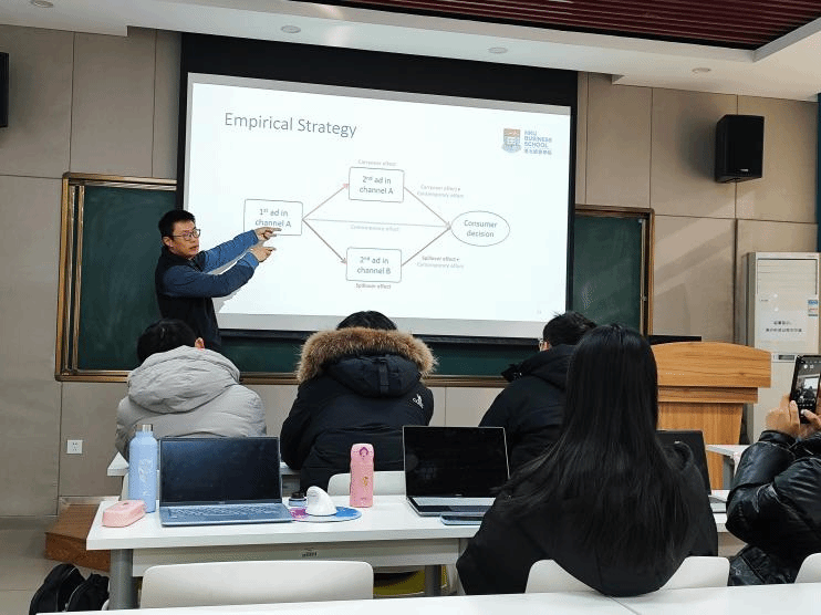 分享结束后,师生们针对广告多渠道效应这个议题展开了热烈讨论,庄梦舟与师生积极互动,详细回答了参会师生的问题。本次讲座为参会师生在市场营销领域的学术研究提供了一次宝贵的学习交流机会,开拓了师生研究思路和学术视野,大家受益颇丰