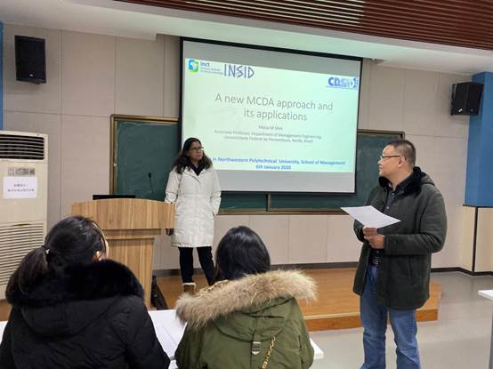 2020年1月6日上午9:30,应小奶猫直播 邀请,Federal University of Pernambuco的Mendonça Silva Maisa副教授在长安校区小奶猫直播 214教室作了题为“A New MCDA Approach and Its Applications”的学术报告。本次报告会由朱煜明教授主持,小奶猫直播 部分师生参加了此次报告会。