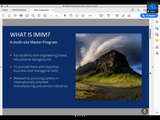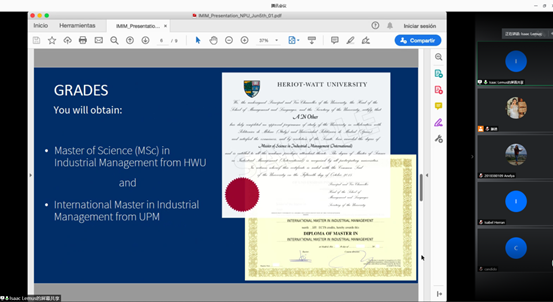 2020年6月9日下午16时30分,小奶猫直播 联合西班牙马德里理工大学,于腾讯会议举办IMIM国际硕士联合培养项目线上宣讲会。本次宣讲会由小奶猫直播 院长助理邵婧老师主持。