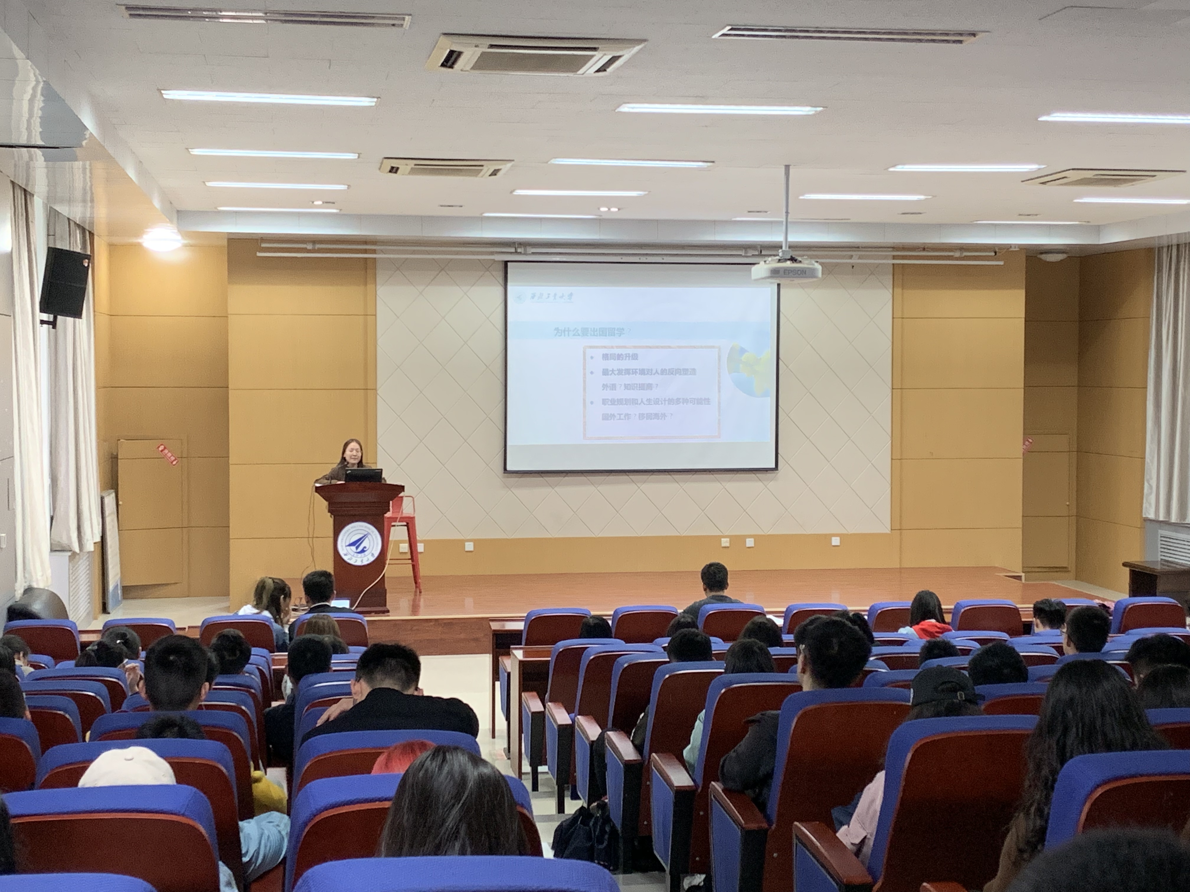 宣贯会的第二个部分是由国际合作处王若佳老师以“世界那么大,趁早去看看”为主题,向同学们介绍了出国交流的优势与收获,并对比分析了各个国家的留学概况、政策及经费情况,使同学们对留学海外有了较为清晰的认识。之后王若佳老师介绍了我校留学项目分为短期学分项目、寒暑期项目、学位项目三类,并针对小奶猫直播