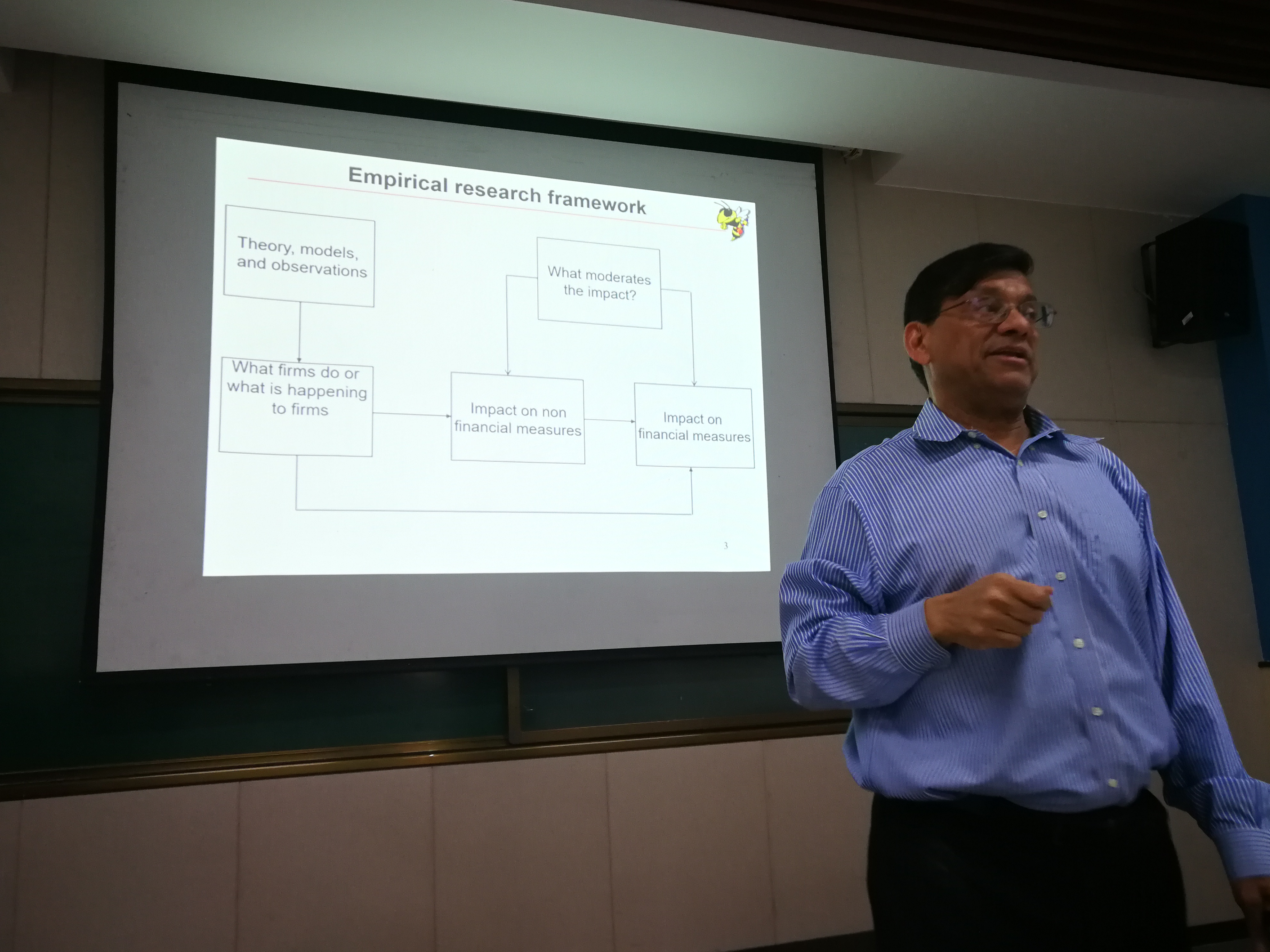 在运用二手数据进行管理研究的研讨会上,Vinod Singhal教授就管理学研究人员如何利用公开获取的二手数据来分析企业管理决策对股东价值、运作绩效等企业绩效指标的影响作用进行了系统的讲解,重点介绍了二手数据的来源和收集方式、衡量股票价格和运作绩效的研究方法和统计技术、以及假设建立过程中可能涉及到的问题。