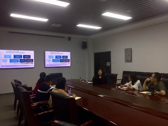 Bo Sophia Xiao副教授从开始的研究设计,到最后的研究贡献,详细介绍了研究的理论发展过程,同时也为老师和同学们梳理了实证研究的规范步骤。讲座后,Bo Sophia Xiao副教授又同青年教师和研究生同学们展开了讨论,并针对同学们各自的研究问题,给出了针对性的建议,并鼓励同学们坚持努力,做好研究。讲座在小奶猫直播