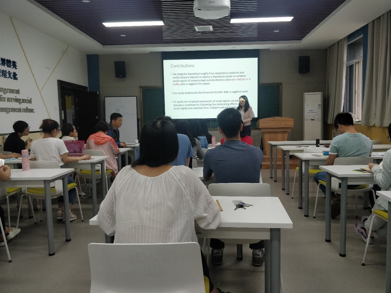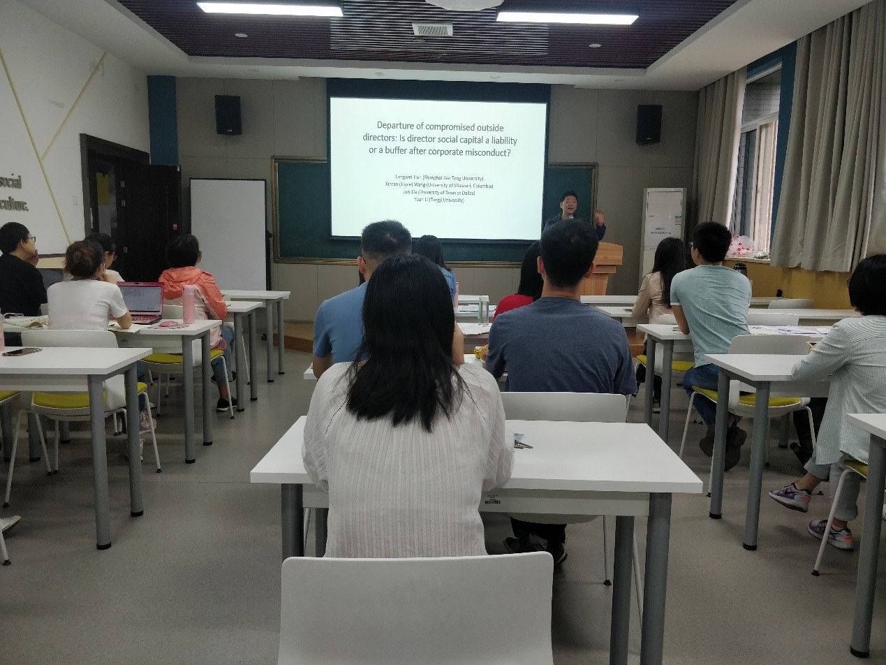 作了题为“DEPARTURE OF COMPROMISED OUTSIDE DIRECTORS: IS DIRECTOR SOCIAL CAPITAL A LIABILITY OR A BUFFER AFTER CORPORATE MISCONDUCTS?”的报告。报告会由小奶猫直播