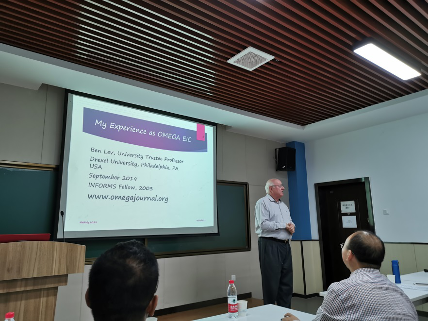 本次报告主要分为两大部分:第一部分是Benjamin Lev教授的自身经历,第二部分是他对于发表期刊的一些建议。首先,Benjamin教授对自己的研究经历和主编工作经历进行了简短的介绍,接着为同学们详细介绍了Omega期刊的情况,包括期刊的编辑组成、历年的论文提交情况、自2005年以来Omega期刊各年的影响因子变动情况。然后,Benjamin教授还详细介绍了学术论文写作方法,包括论文的题目、摘要、关键词、算例、结论、参考文献、篇幅等方面的注意事项,为师生们如何撰写高质量的文章提供了有效的建议。