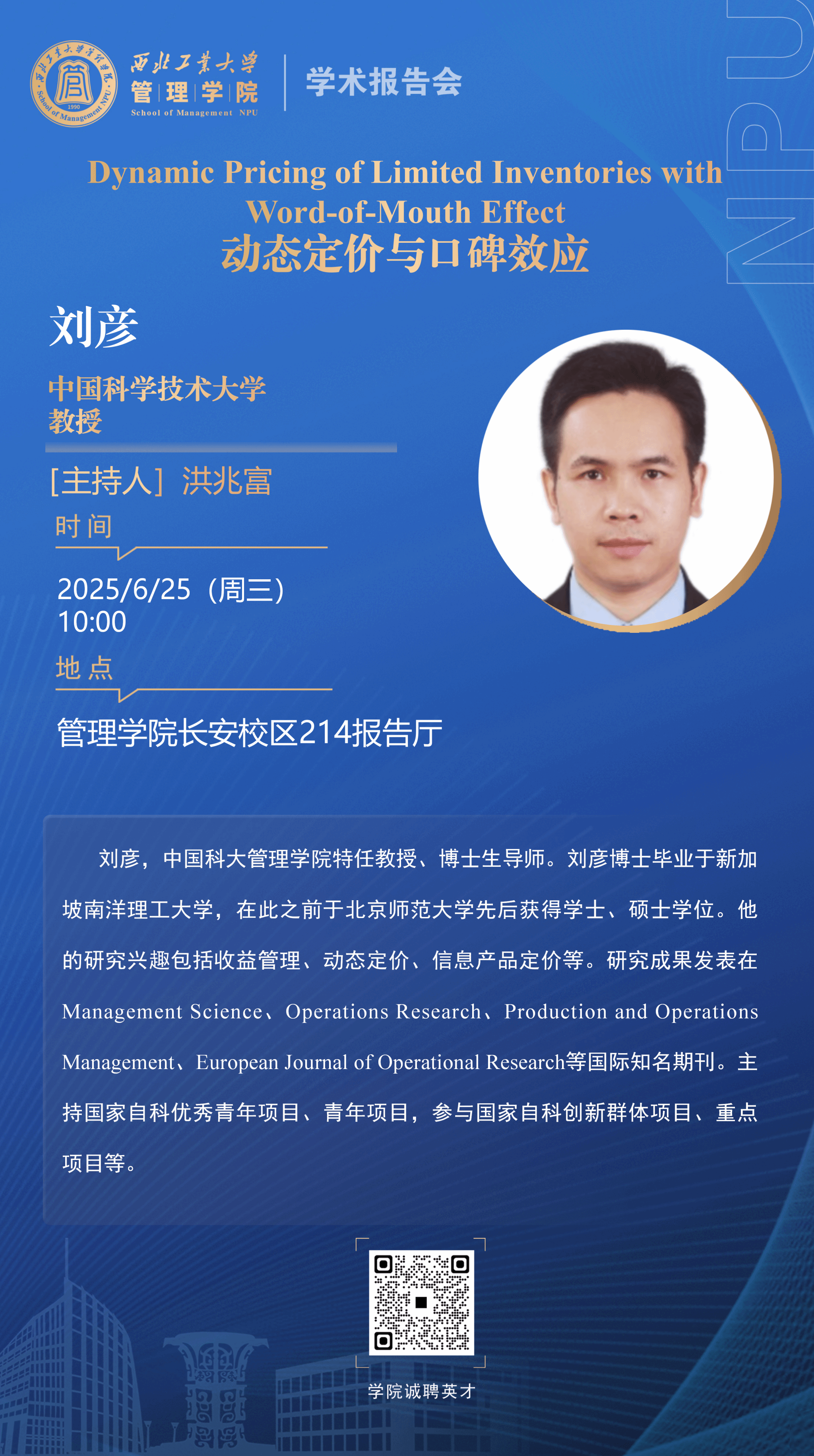 【学术报告】Dynamic Pricing of Limited Inventories with Word-of-Mouth Effect动态定价与口碑效应