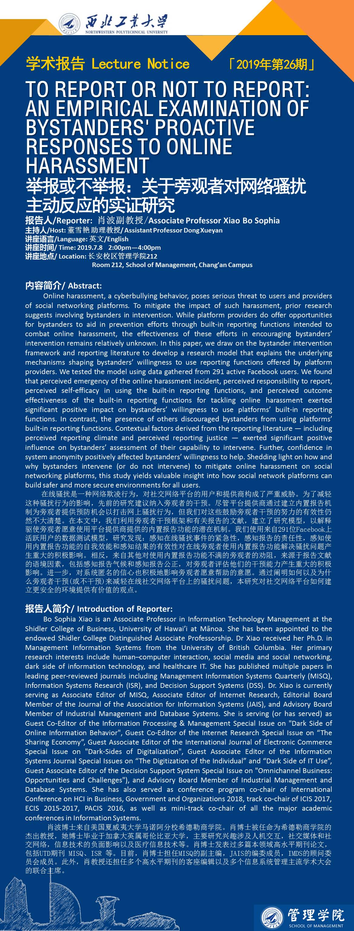 [学术报告]To Report or Not to Report: An Empirical Examination of Bystanders' Proactive Responses to Online Harassment