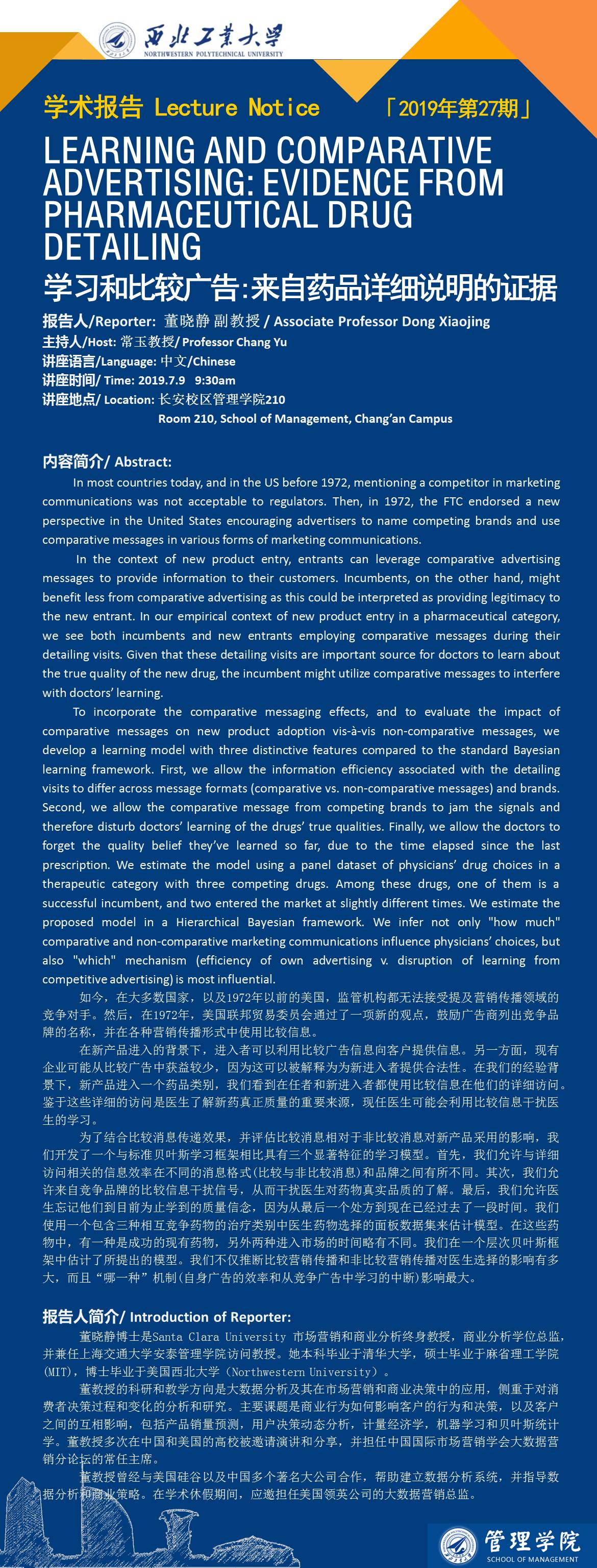 [学术报告]Learning and Comparative Advertising: Evidence from Pharmaceutical Drug Detailing