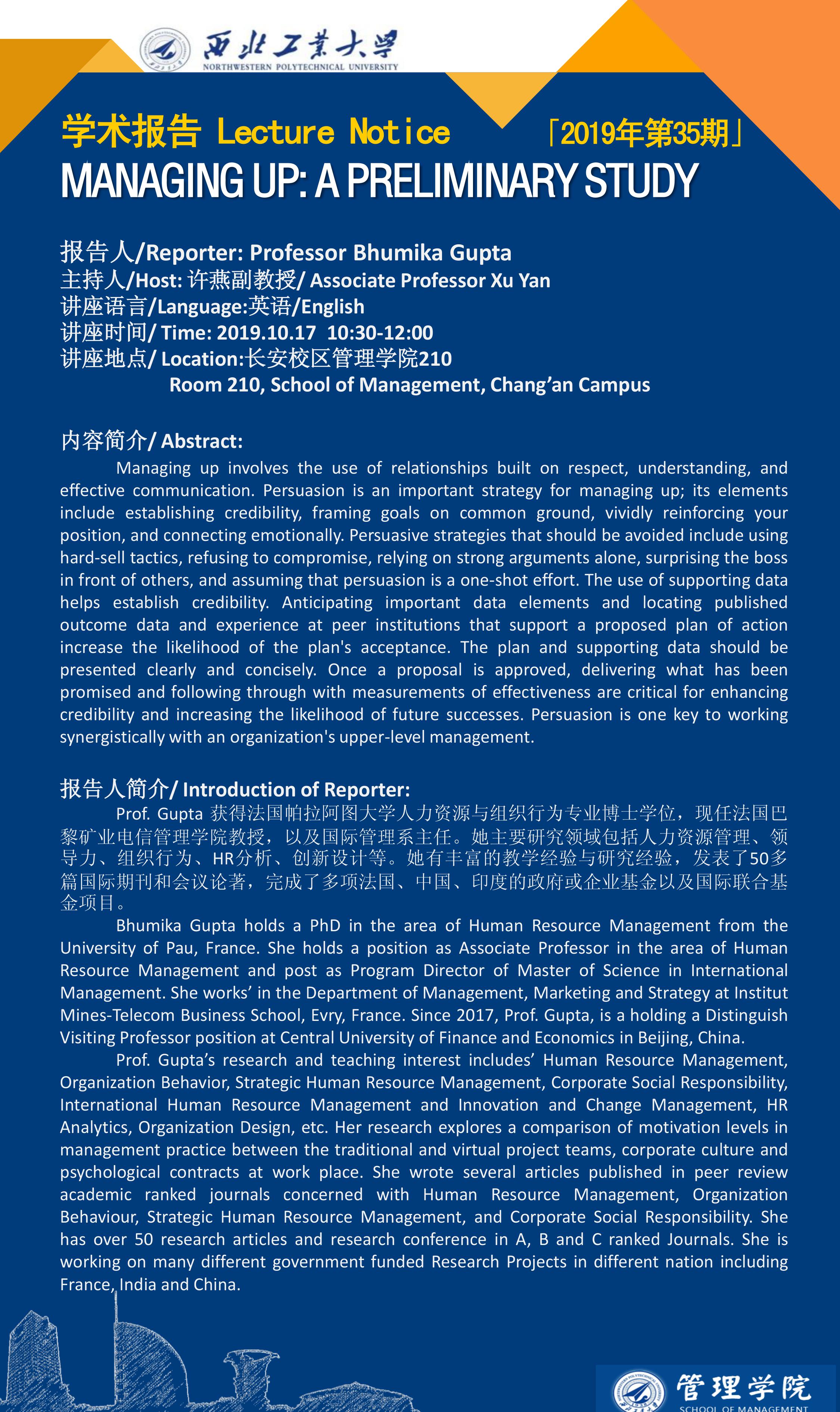 [学术报告]MANAGING UP: A PRELIMINARY STUDY
