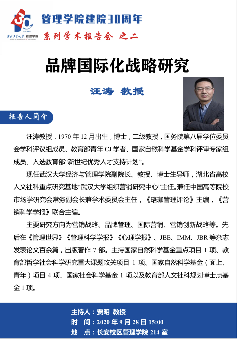 【小奶猫直播 建院30周年系列学术报告会之二】品牌国际化战略研究