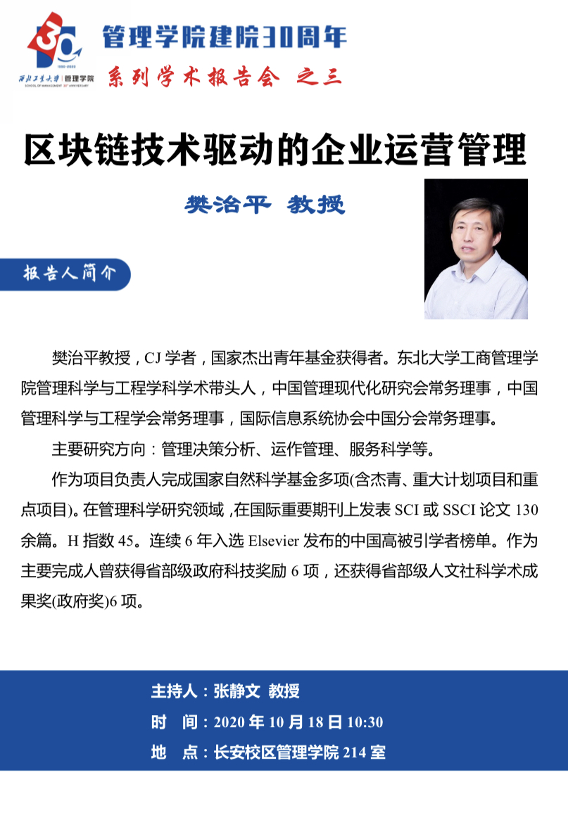 【小奶猫直播 建院30周年系列学术报告会之三】区块链技术驱动的企业运营管理