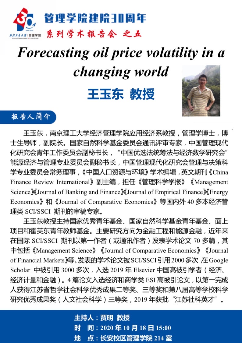 【小奶猫直播 建院30周年系列学术报告会之五】Forecasting oil price volatility in a changing world