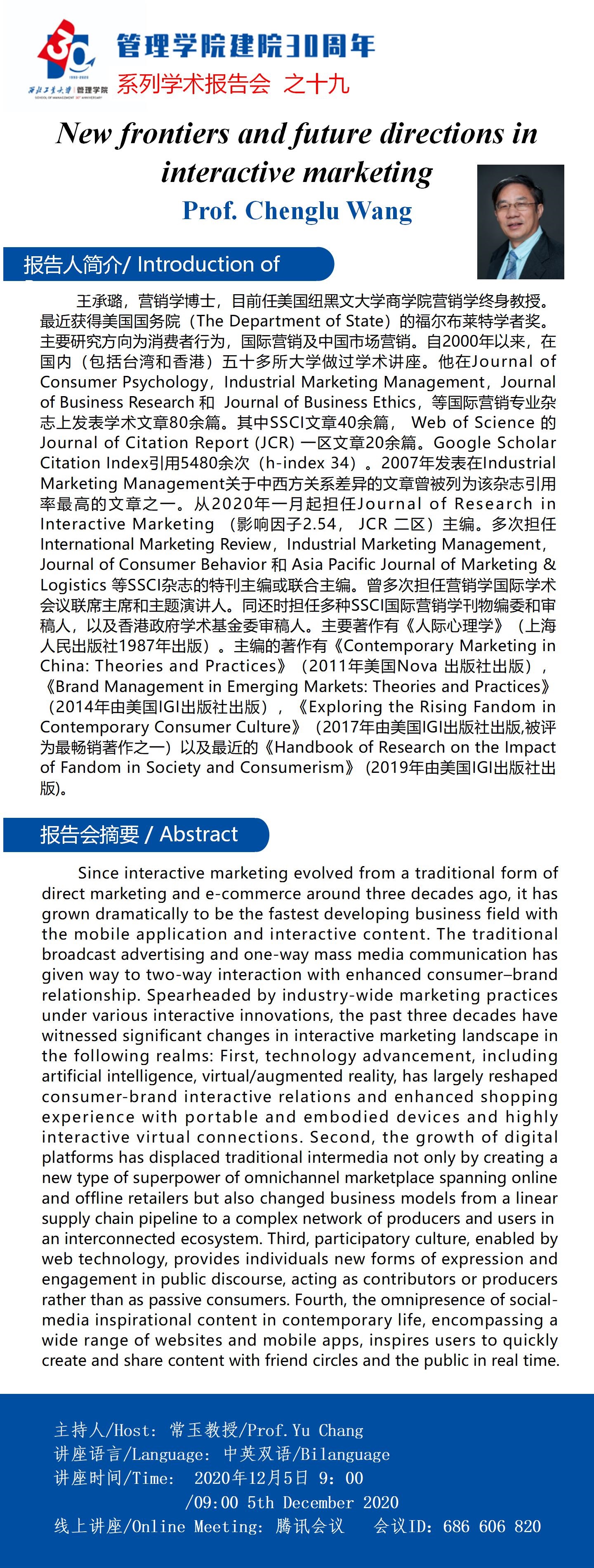 【小奶猫直播 建院30周年系列学术报告会之十九】New frontiers and future directions in interactive marketing