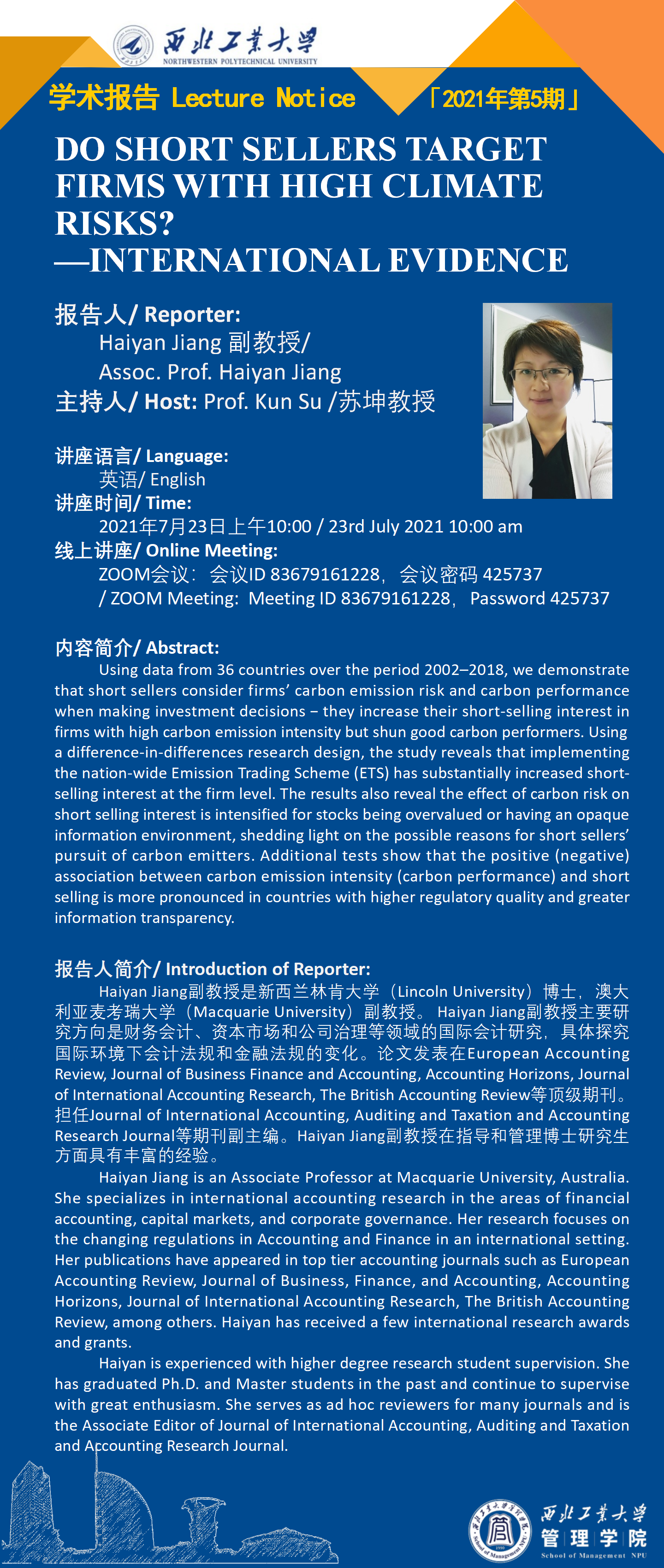 【学术报告】DO SHORT SELLERS TARGET FIRMS WITH HIGH CLIMATE RISKS?—INTERNATIONAL EVIDENCE