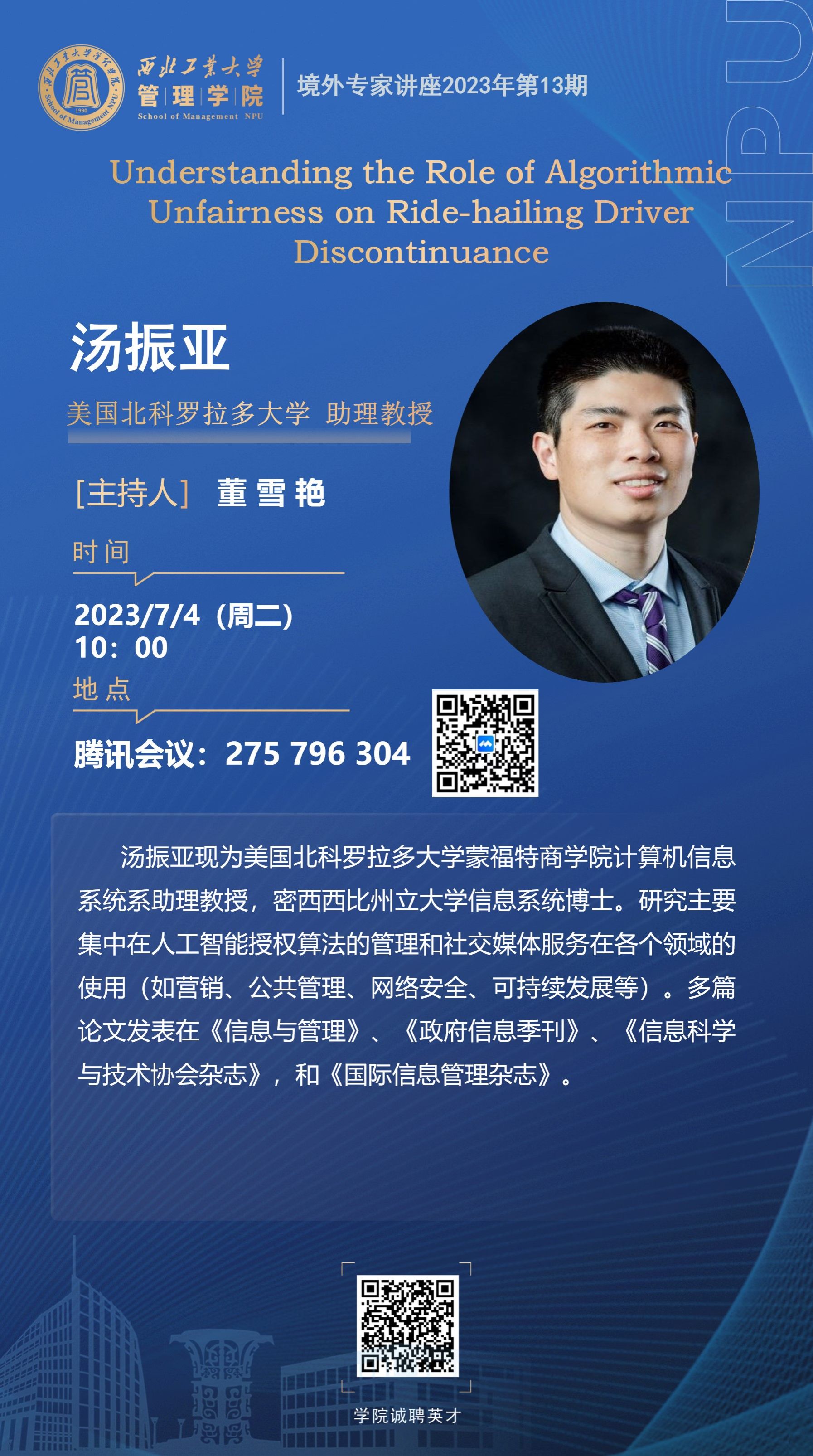 【学术报告】The Dark Side of Artificial Intelligence: Understanding the Role of Algorithmic Unfairness on Ride-hailing Driver Discontinuance