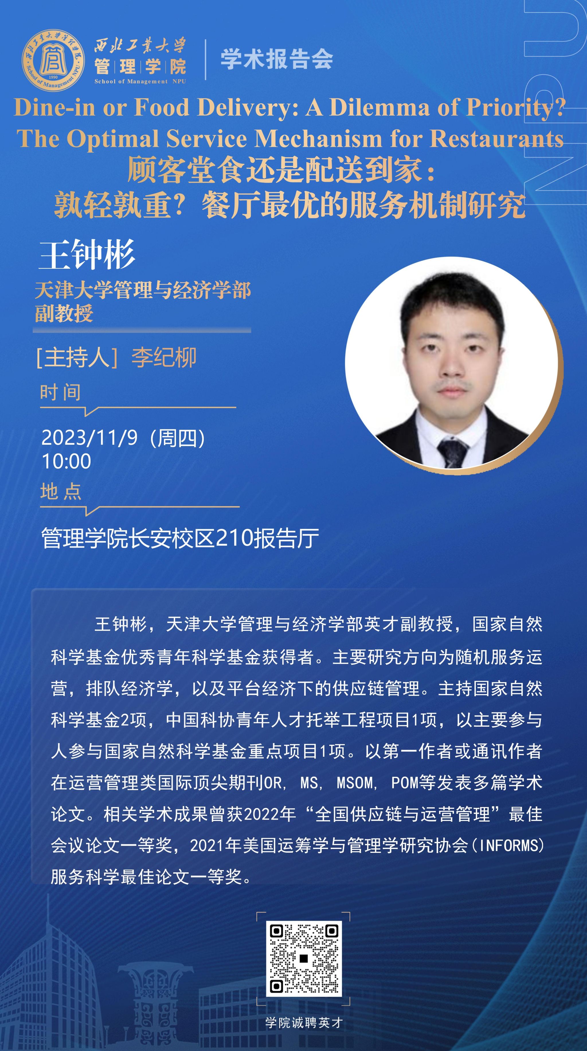 【学术报告】Dine-in or Food Delivery: A Dilemma of Priority? The Optimal Service Mechanism for Restaurants顾客堂食还是配送到家:孰轻孰重?餐厅最优的服务机制研究