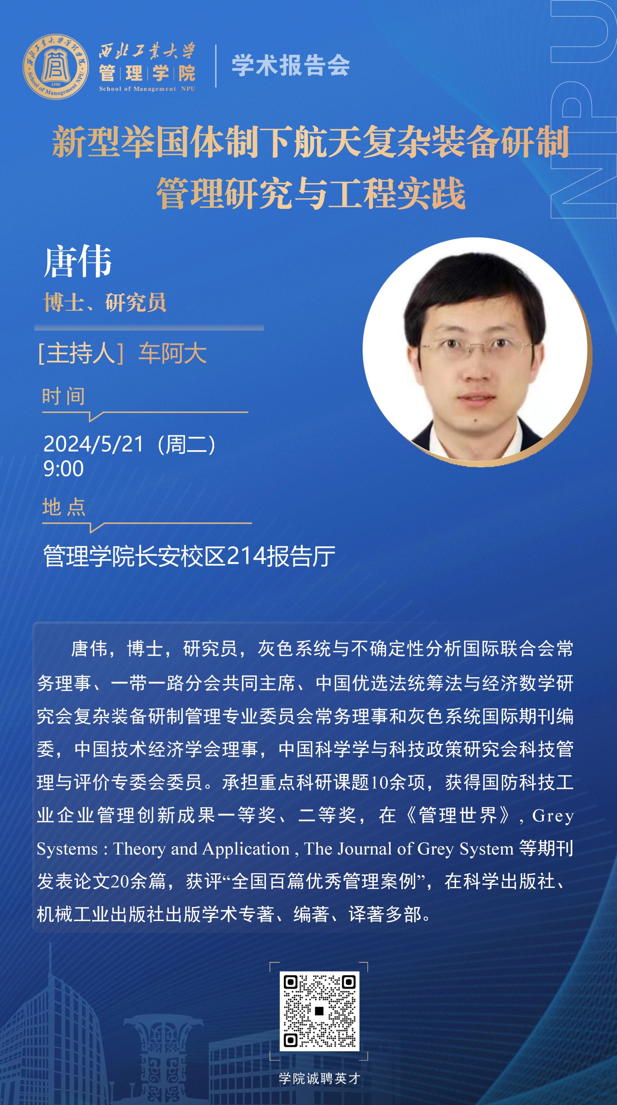 【学术报告】新型举国体制下航天复杂装备研制管理研究与工程实践