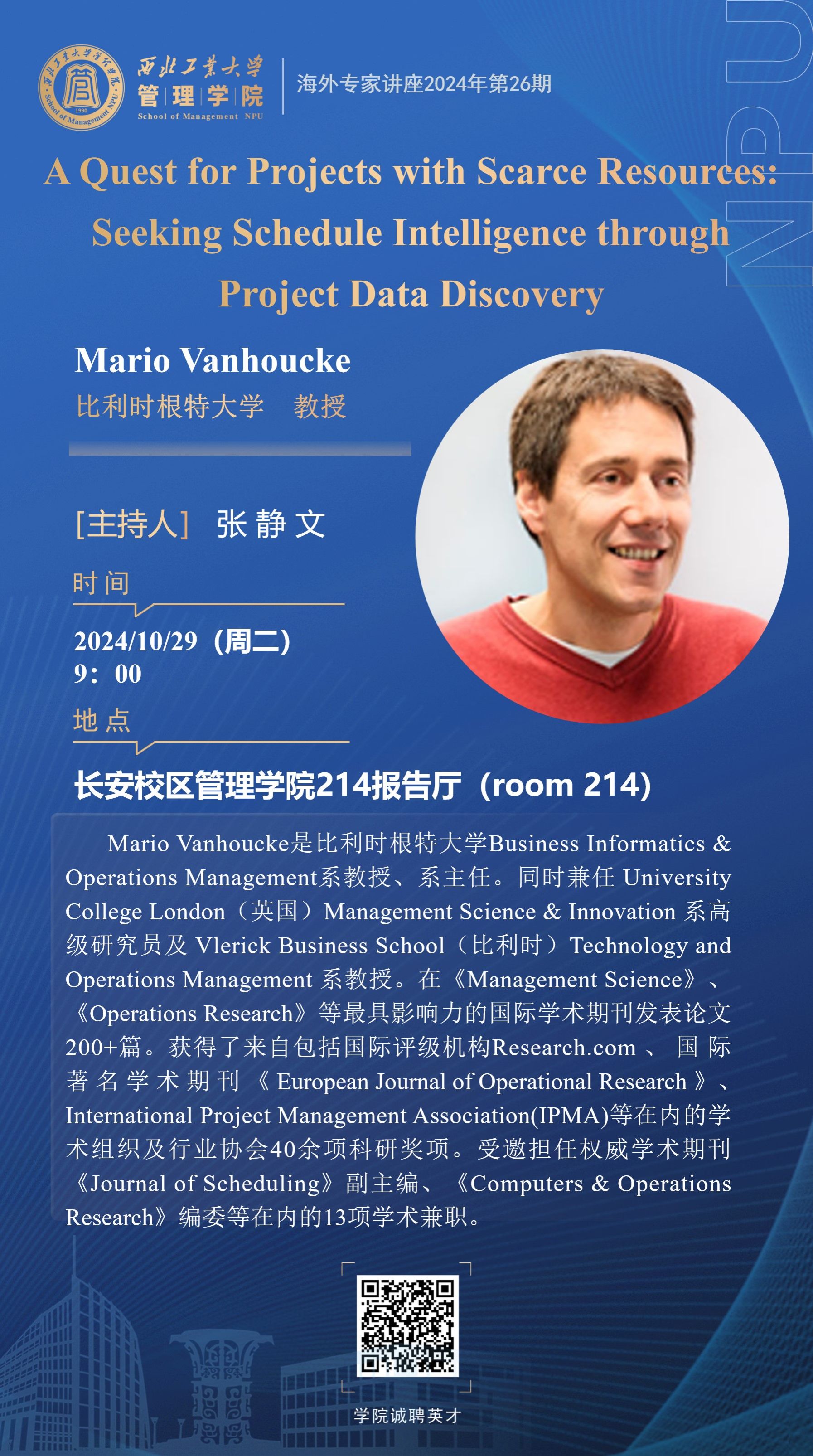 【学术报告】A Quest for Projects with Scarce Resources:Seeking Schedule Intelligence through Project Data Discovery