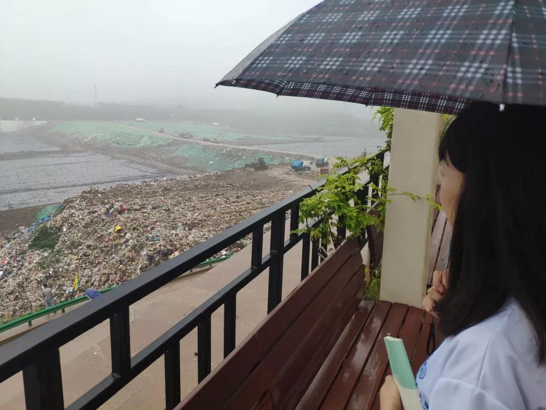 早上十点,实践队来到白鹿原江村沟垃圾填埋场。在距离目的地几公里之外,便已经闻到了垃圾发酵的臭味,填埋场内令人不适的气味让我们充分感受到了工作人员的辛苦和西安市垃圾分类的必要性。