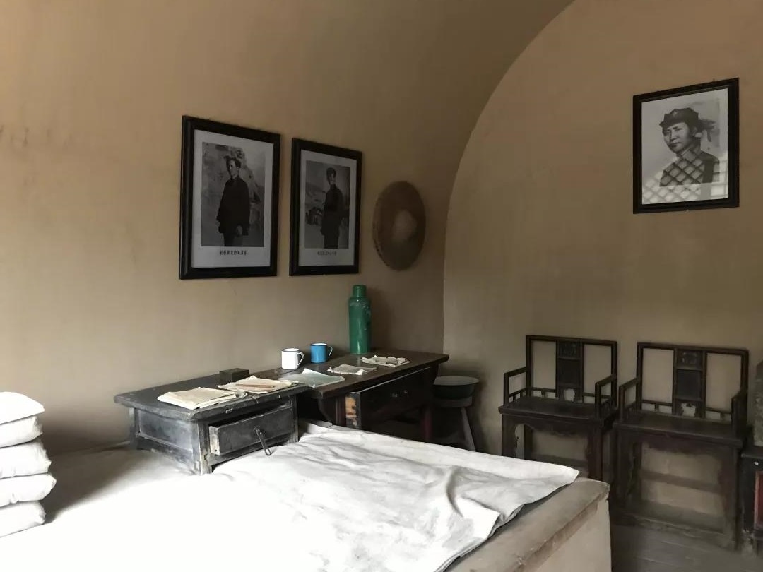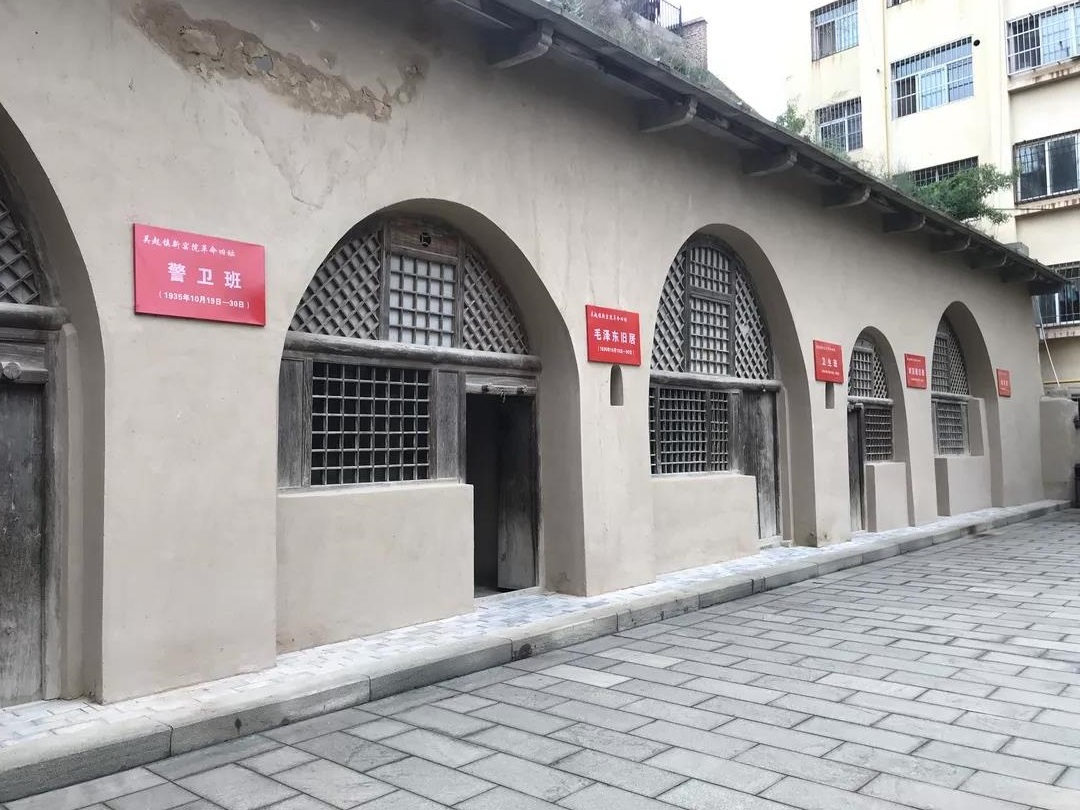 从展厅出来后,映入我们眼帘的便是一排窑洞,旧址总体呈长方形,分南北两院。南院为毛泽东同志旧居,为一排坐东向西5孔接口土窑洞,毛泽东于1935年10月19日至10月30日曾住在这里,在此期间,他同彭德怀部署指挥了“切尾巴”战斗,打退了尾追的敌人。在这里毛泽东还会见了红15军团前来联系的同志,接见了地方政府与游击队负责人龚逢春、张明科等;其余窑洞为卫生班住所、机要班住所等;北院是中共中央和中央红军所在地,有张闻天、王稼祥等中央领导同志旧居;南起第一孔窑洞为政治局会议室(林彪旧居),内陈列有石磨、石碾,原为磨房;其余窑洞也同样是领导同志及红军战士的旧居。