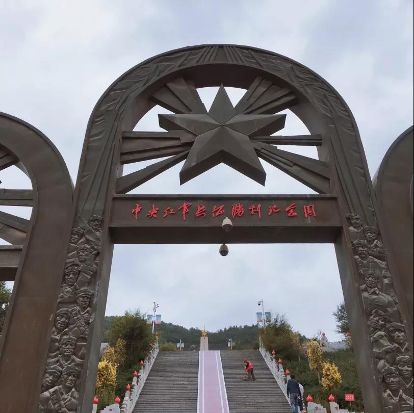 结束了吴起革命旧址的参观,我们紧接着又来到中央红军长征胜利纪念园。由于下着蒙蒙小雨,远远望去,中央红军长征胜利纪念碑矗立在半山腰,若隐若现,气势如虹。站在纪念馆正前方,正门大气磅礴,随着楼梯往上看,中央红军纪念碑屹立在眼前,两侧楼梯中间的红色地砖上,以历史为轴,铸刻了红军长征过程中的一点一滴。