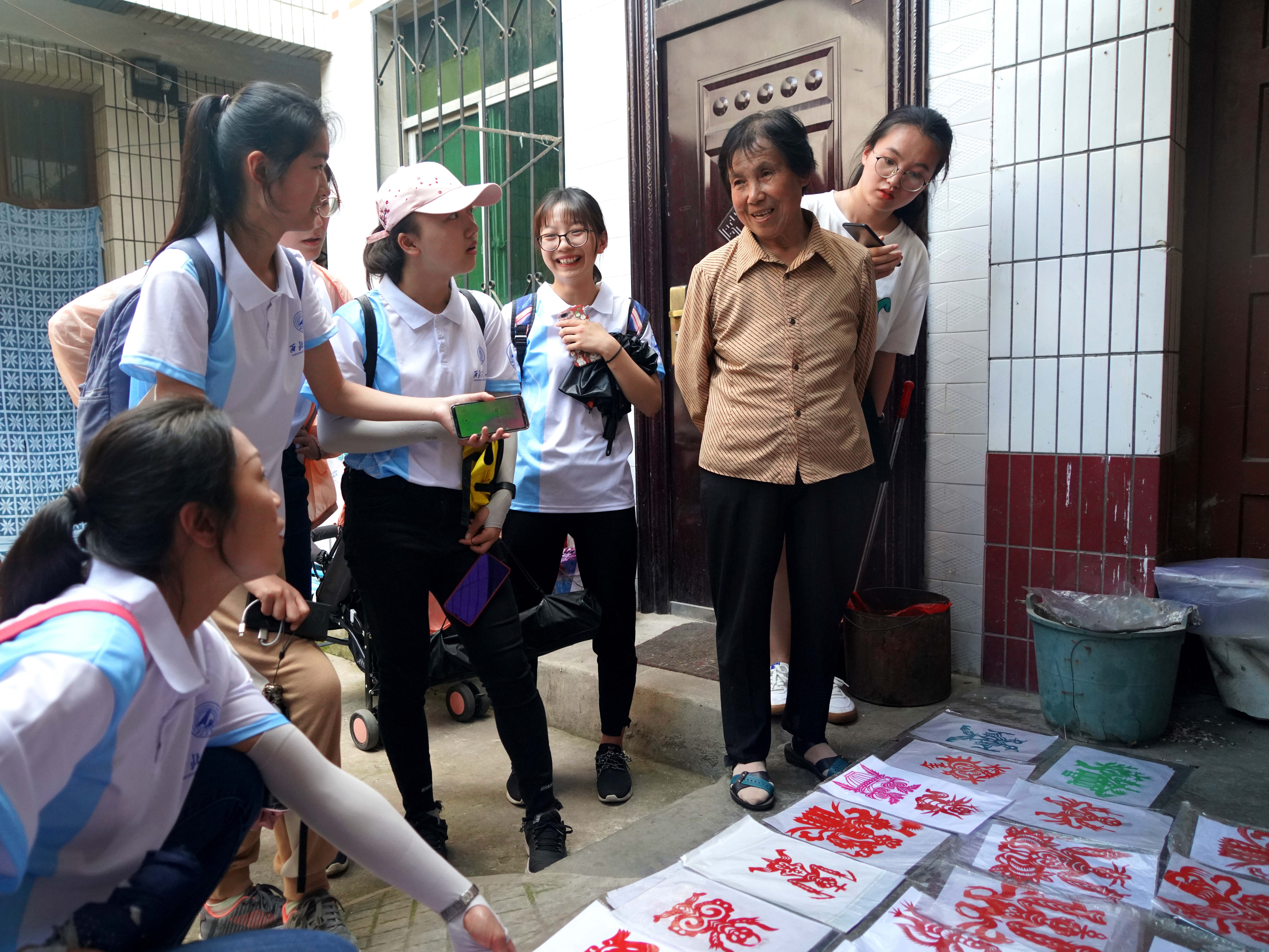 徐有姐将剪纸的80种传统图案创新性地拓展到了280种。徐有姐的剪纸内容涉及广泛,不仅是各种动物,更取材于中国古代神话故事。徐有姐向实践队员介绍了各种剪纸图案的故事和寓意,让大家更深刻地体会了精怪剪纸艺术的魅力。