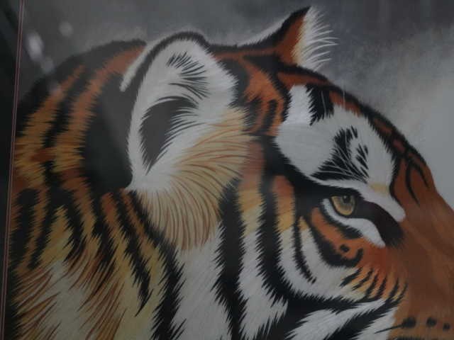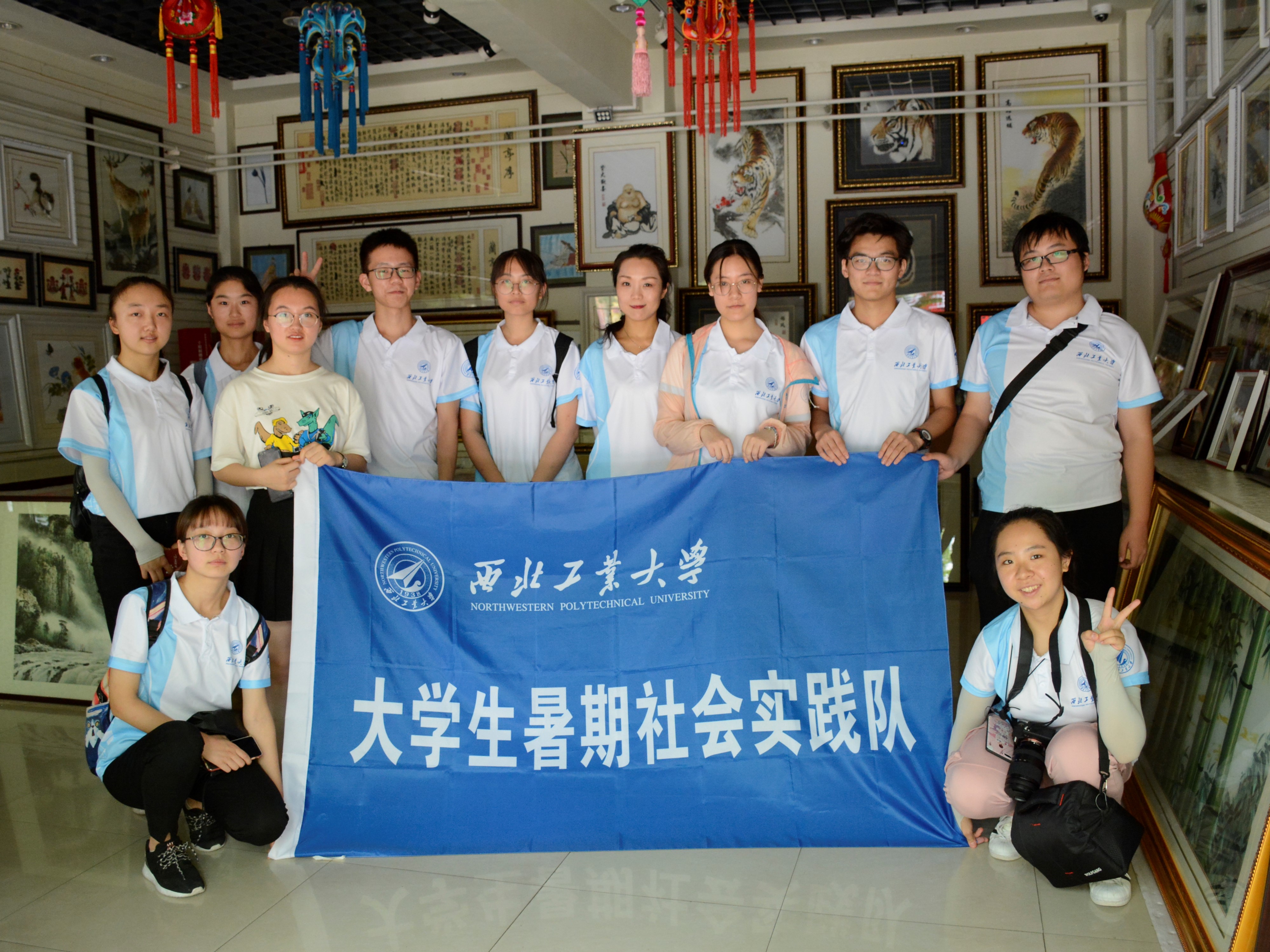 实践队员在负责人的介绍下,了解了与先前的虎头鞋等老百姓喜闻乐见的集美好寓意与实用性的家常工艺品不同的刺绣画。与普通刺绣相比,西秦刺绣所用原料均为丝线,不易褪色,更具收藏价值。由于其独特的复杂工艺,在一幅刺绣画中,针眼和线头都很难被发现,这使西秦刺绣画表现的图案更为立体,更富光泽和活力。