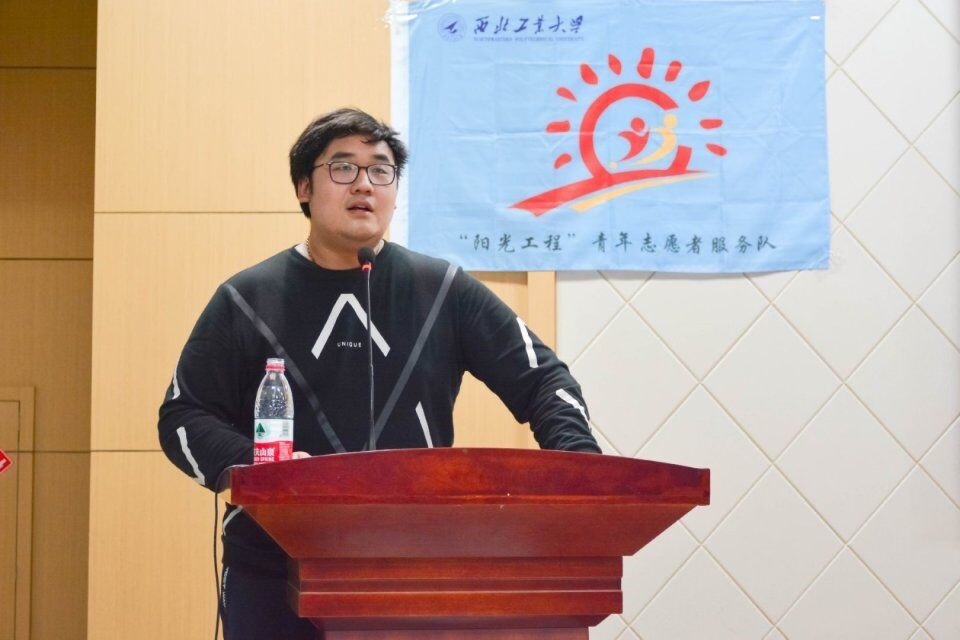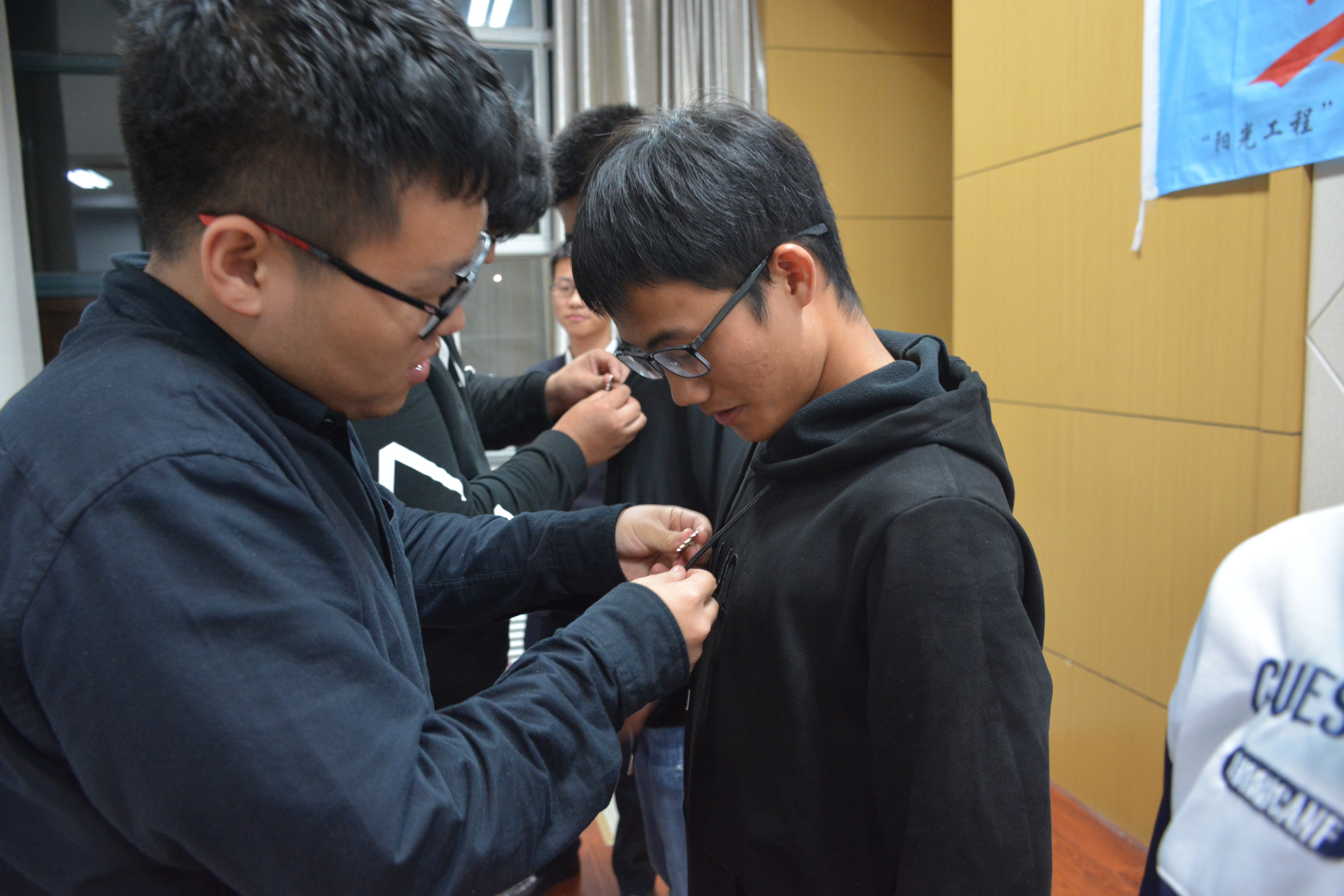青年教师、辅导员薛力以及“学而思”培优苏国勇出席了本次仪式。蓝色学堂航空科普志愿者服务队,航天科普志愿者服务队,摆渡者青年志愿者服务队,“一心”志愿者服务队,绿色行环保志愿者服务队,蓝心青年志愿者服务队,“心++”青年志愿者服务队,红十字会,蒲公英青年志愿者协会等社团代表出席本次仪式。“阳光工程”委员会全体成员及志愿者参加启动仪式。