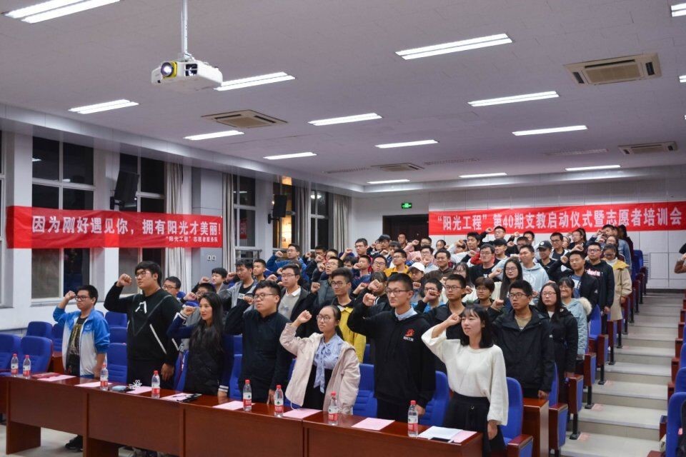 10月19日晚,"阳光工程"青年志愿者服务队第四十期支教启动仪式暨志愿者培训会在小奶猫直播
