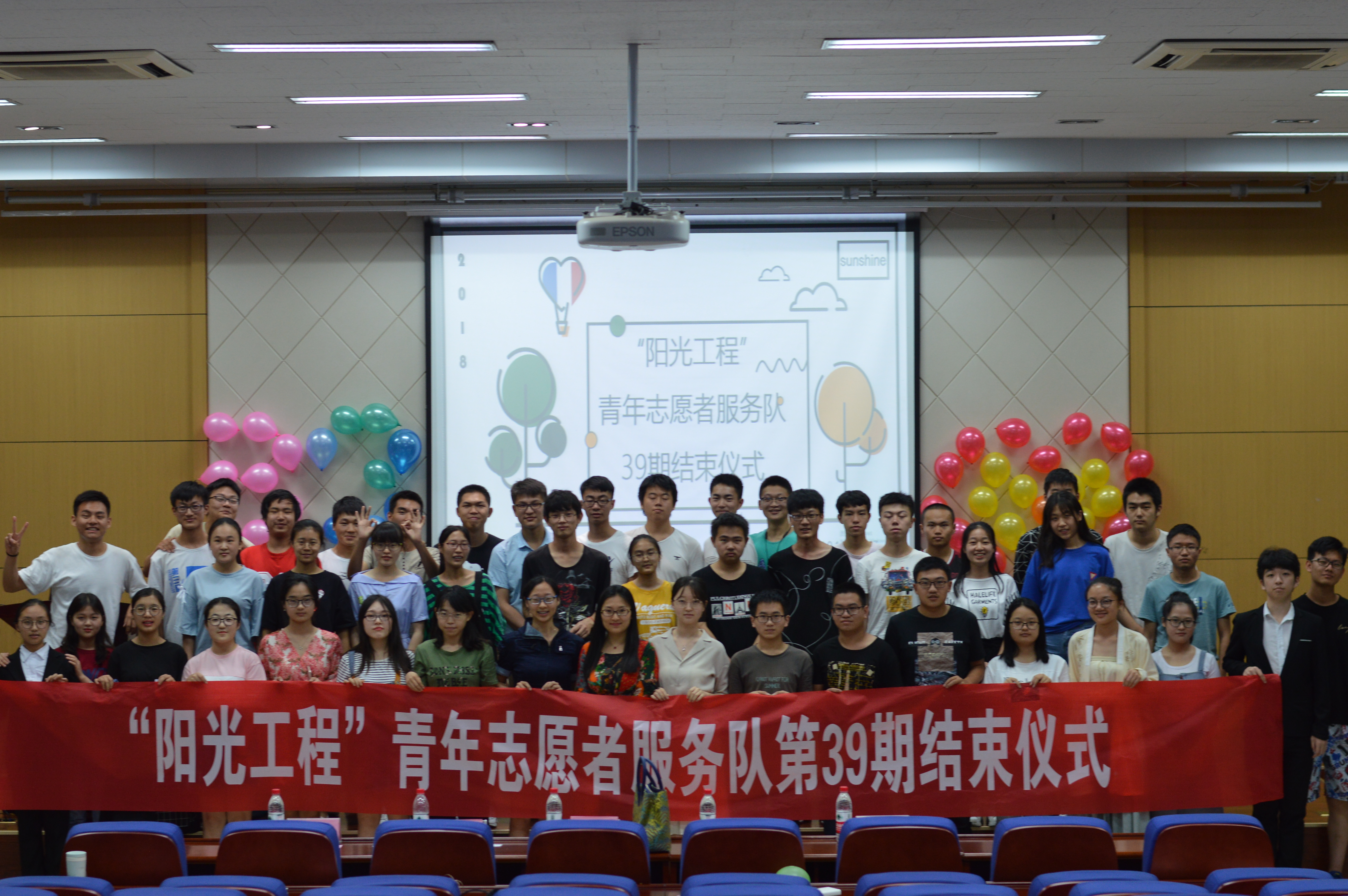 辅导员王泠老师,蓝色学堂航空科普志愿者协会代表,绿色行志愿者服务队代表出席此次仪式。“阳光工程”委员会全体成员及志愿者参加结束仪式。