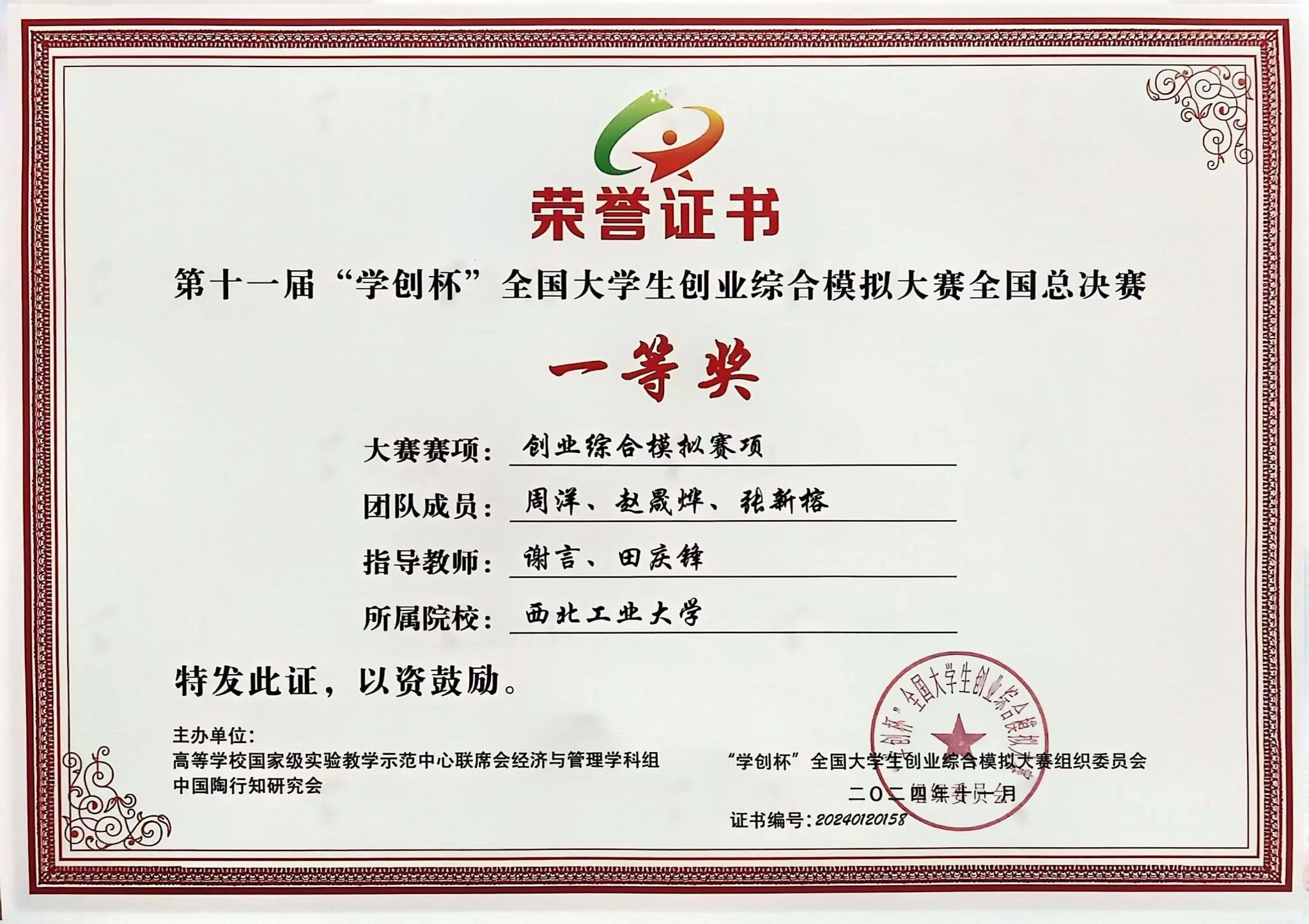本科生周洋、赵晟烨、张新榕组成的参赛团队,凭借优异表现成功晋级全国总决赛,最终荣获全国一等奖。