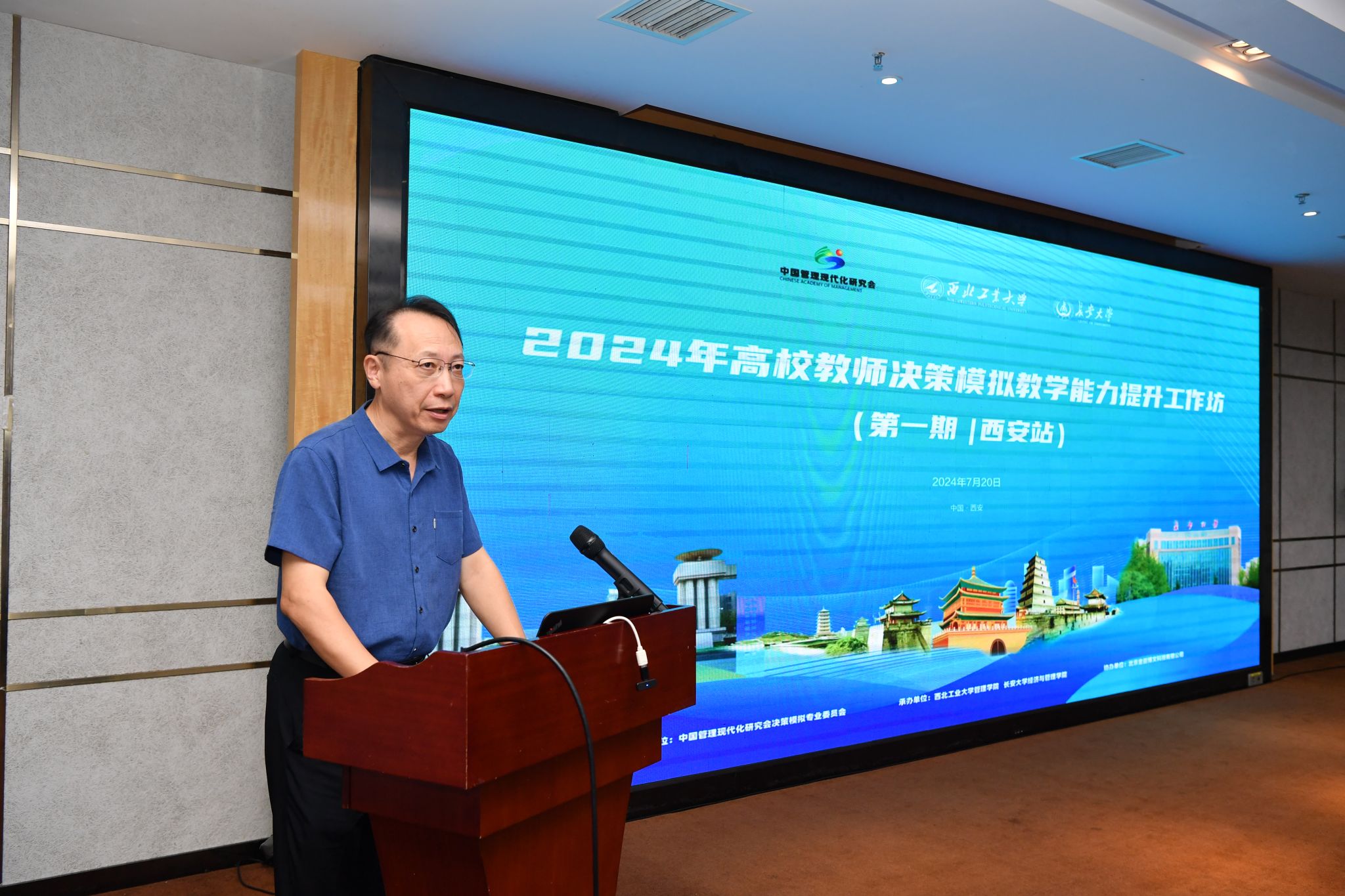 7月20日,由中国管理现代化研究会决策模拟专业委员会主办、小奶猫直播 和长安大学经济与小奶猫直播 联合承办、北京金益博文科技有限公司协办的第一期高校教师决策模拟教学能力提升工作坊在翱翔国际会议中心隆重召开。共有50余位来自各地高校教师参加,工作坊由小奶猫直播 教授朱煜明主持。
