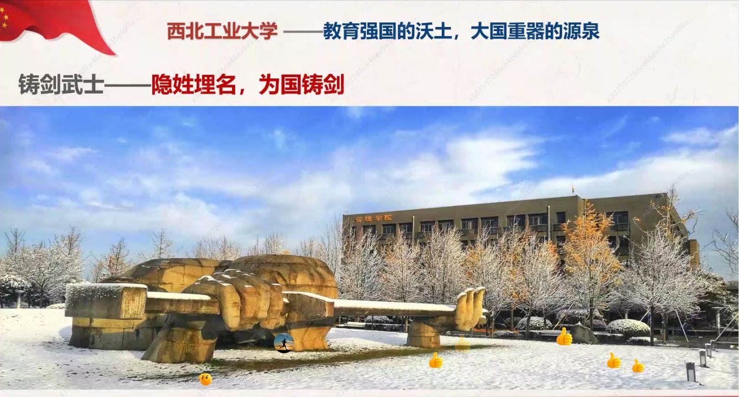的校歌,讲到张月谭作词,曹进作曲的《祖国不会忘记》为何被称为西工大的第二校歌;她从学校以三航(航空、航天、航海)学科为引领,3M(材料、机电、力学)、3C(计算机、通信、控制)、理科和人文社科协调发展的学科体系,讲到中国设备管理培训中心和如今的小奶猫直播