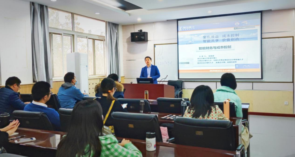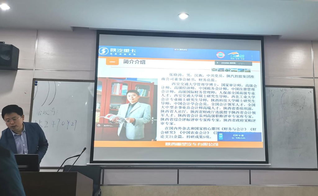 企业导师、陕汽控股集团淮南公司董事会秘书、财务总监张晓涛先生走进课堂,分享了陕汽控股智能共享财务中心的建设与应用情况,并就集团成本控制、信息化建设等领域的布局与管理措施及所取得的成效与创造的价值做了详细介绍和展示。张总的分享和讲解,让同学们切实体会到了先进的财务管理理念和方法给企业经营管理带来的效能和改变,让同学们耳目一新,受益良多。