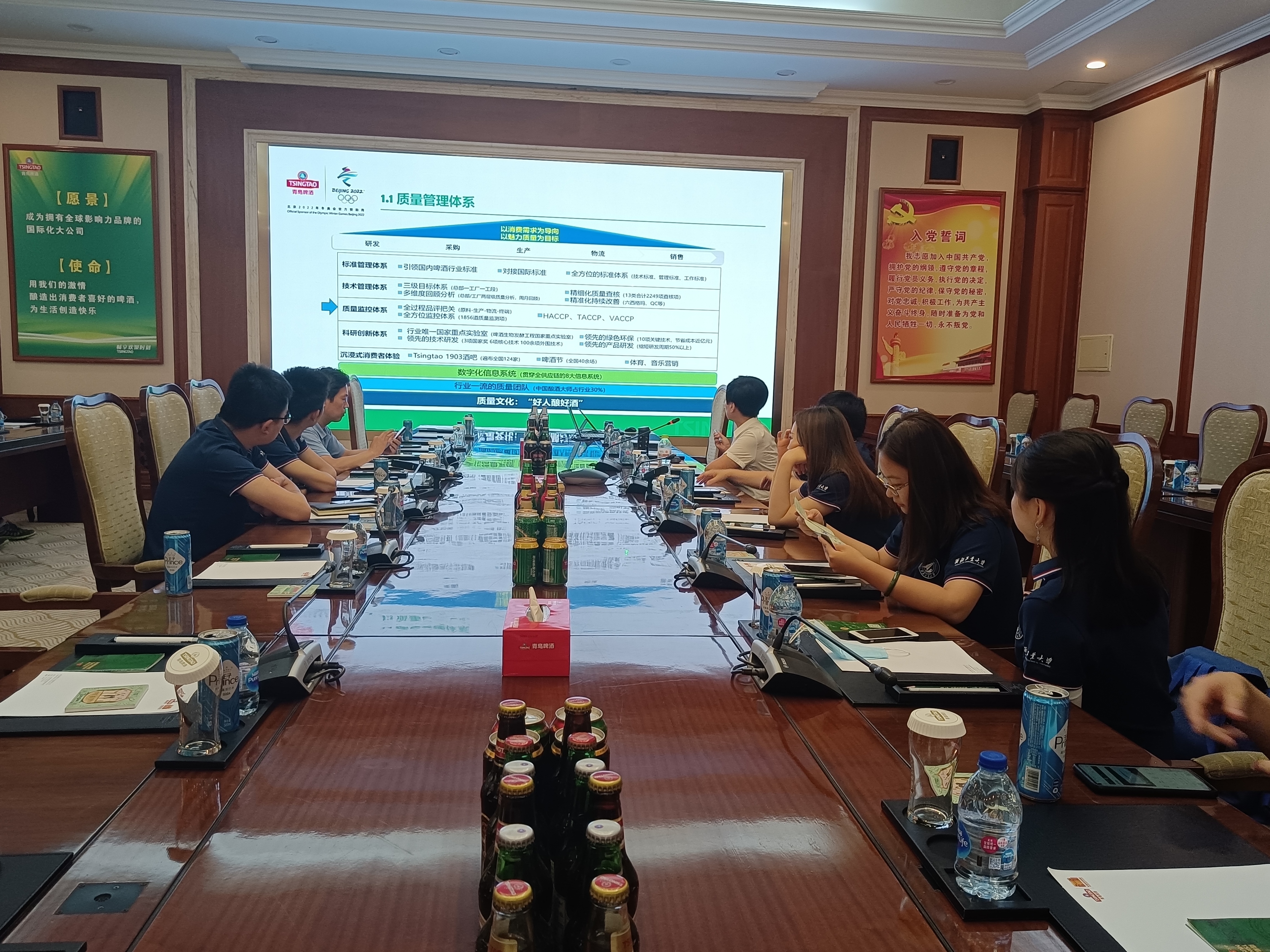 7月21日上午,访学团抵达青岛啤酒股份有限公司参访。青岛啤酒博物馆馆长姜卫女士以《青啤品牌管理及发展战略》为题,为大家分享了百年青啤发展中关于品牌的有趣故事,以及在不同时代塑造和维护青啤品牌的历程。姜馆长还详细介绍了青啤的质量战略、产品创新、品牌管理体系及全球化营销等内容。随后,访学团参观青岛啤酒博物馆,感受青岛啤酒的小奶猫直播和光辉发展史,品尝了世界闻名的青岛啤酒。