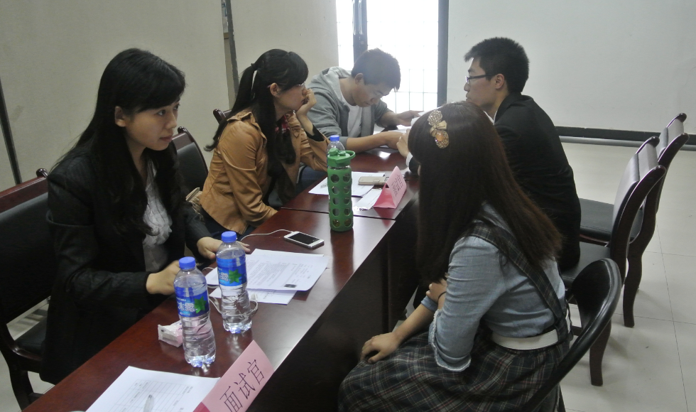 本次模拟招聘活动专业设置全面、面向全校所有学生、涵盖面广、流程专业规范,共设有无领导小组讨论、压力面试、职业生涯规划三个环节。应聘学生在现场工作人员的引导下有序地步入会场,所有的面试位置前座无虚席,其中来自巴基斯坦的留学生们也积极踊跃地参与到活动中。值得一提的是本次招聘会与往年相比有很多新看点,其中最大的亮点就是融入了创业指导服务,旨在为毕业后有自主创业规划的学生答疑解惑、铺路搭桥。在交流过程中,面试者先对自己的创业方向和项目进行具体的介绍和说明,MBA面试官就此给出总体的评价并指出其中存在的问题及相应的改进建议。在活动如火如荼进行的同时,智联招聘就业有“位”来2014大学生就业公益活动也走进了我校,众多企业HR主管为学生进行专业指导,内容包括简历设计及面试技巧等方面也让同学们受益匪浅。