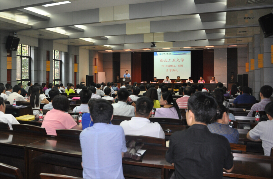 赵嵩正院长、杨志坚书记、郭鹏副院长、李彩香副书记、工程教育(专业学位)中心朱煜明主任及2014级全国MBA、MEM西安班新生、陕西MBA西安班新生共120余人参加了开学典礼。开学典礼由MBA教育中心郭德主任主持。